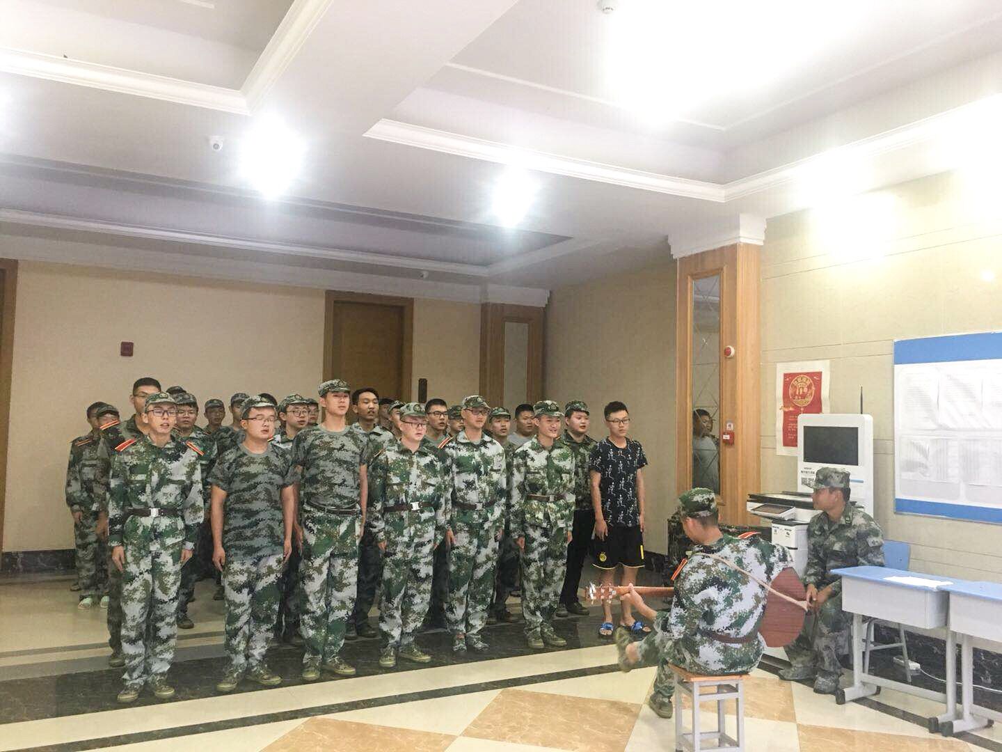唱歌虽是调味料,正事倒没有忘记。教官带着室长们进入标准寝室教学“桌上最上面放置书籍,中间的洗漱用品按照顺序排列”,同学们聚精提神地听着教官的讲解,虽是男生,大家都是初中有细,“箱子放在最下,中间裤子,最上是短袖内衣。”部队的严格标注时时刻刻体现在这些生活上最简单的细节上。回到寝室的室长也一五一十地交给同学们,大家的仔细认真给军训也添加了新的活力。