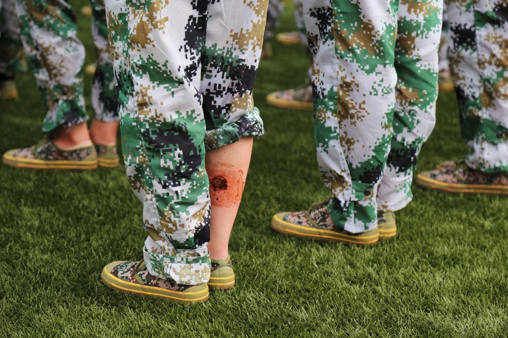 左右左一二一,口令和回应的有力不分伯仲,条件反射的动作已经牢牢记在心底,这是团结的初效,是坚持的成果。重复的次数越来越少,训练的内容越来越多,我们都知道,这是六天的训练在教会我们成长。教官的神情也多出了些满意,而我们之间这场较量也在一日日里多出了一些情愫。