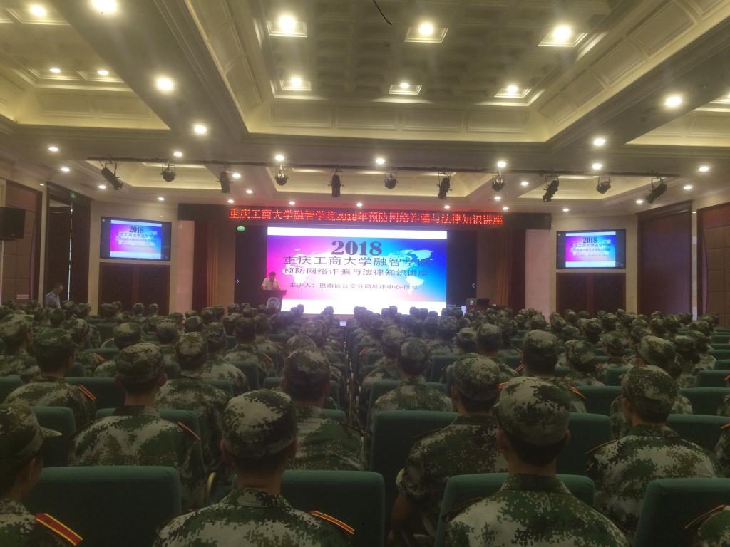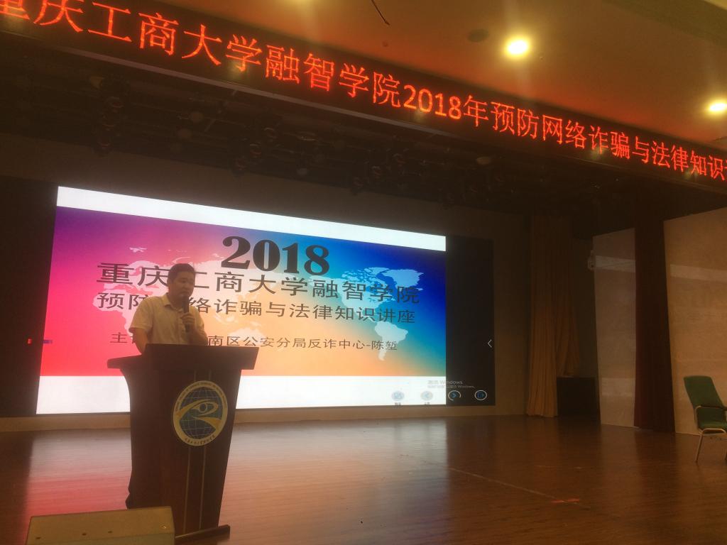 2018年9月12日下午14:30,重庆工商大学融智学院2018年预防网络诈骗及法律知识讲座在学术报告厅举行。为了加强广大师生的自我防范意识,共同提高识骗防骗能力,保卫处特邀请巴南区公安分局刑警支队预防新型网络犯罪大队的陈堑警官现身说法,传播专业知识,分析典型案例,为师生们呈现出一场极具知识性、趣味性、实战性、实用性的防骗识骗盛宴。