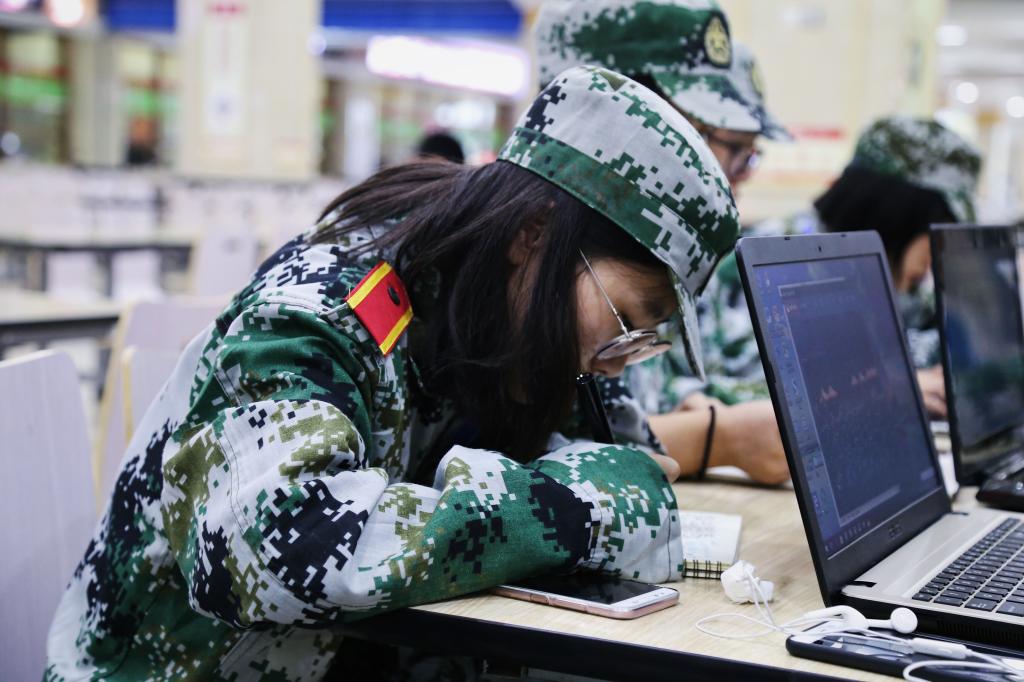 他们用照片定格了大家的酸辣苦辣咸,用文字记录了喜怒哀乐。穿上迷彩服精神抖擞认真训练的同学,抱着吉他的文艺青年,围在一起嗨歌的人群,夜晚散发光芒的新星,都在记者团镜头下、白纸上。