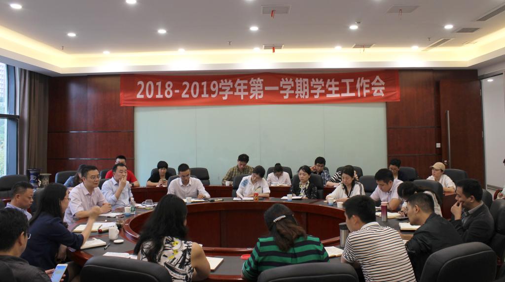 2018年9月20日下午2:30,我校在行政楼2303会议室召开了本学期第一次学生工作会。出席本次会议的有学校党委书记丁广龙、党委副书记陈龙国、校长助理房朝君、校长助理李春雷、相关职能部门负责人、各学院党总支副书记、各学院团学办主任以及学生处(团委)全体工作人员。会议由陈龙国副书记主持。