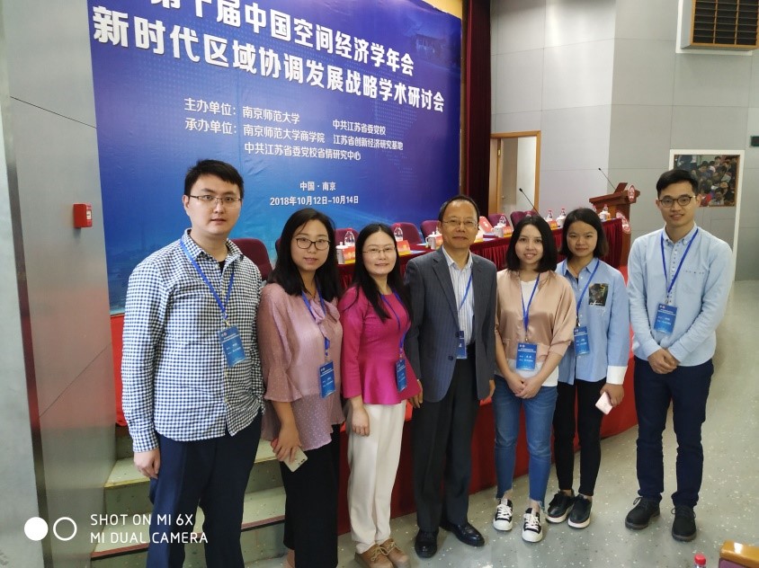 为了更好落实十九大精神,深入贯彻习近平新时代中国特色社会主义思想,2018年10月12~14日,第十届中国空间经济学年会暨新时代区域协调发展战略学术研讨会在南京师范大学举行。我校经济学教学团队成员罗胤晨、潘曦、王路云、李扬杰、李星林和彭子洋等六名老师,受邀参加了此次学术会议。