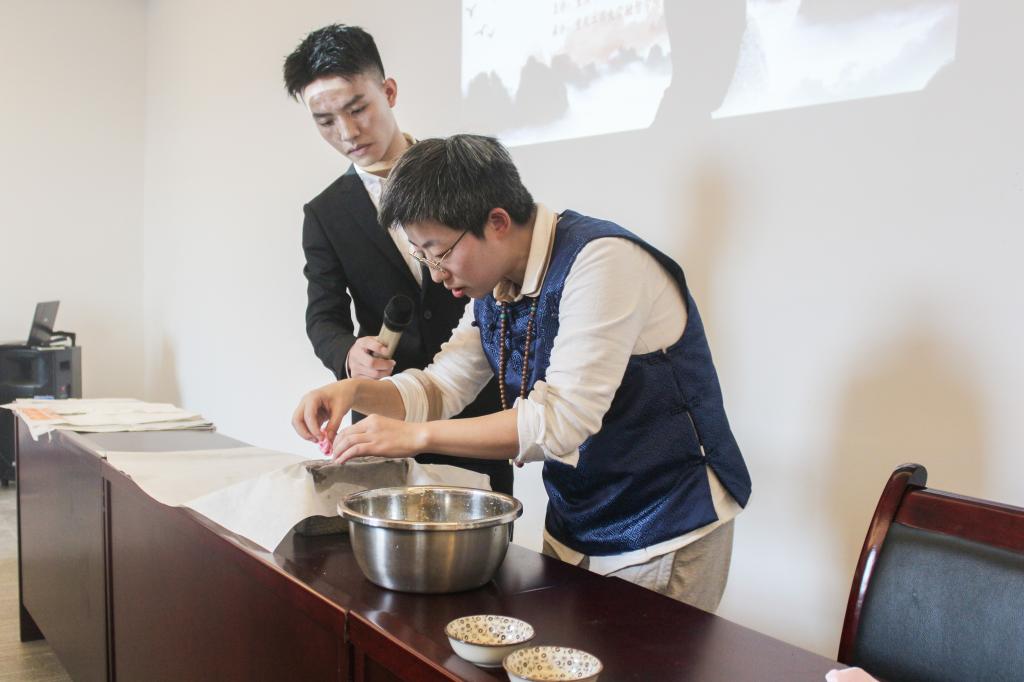 为进一步贯彻落实习近平新时代中国特色社会主义思想和党的十九大精神,由市委非公工委、共青团重庆市委主办,我校承办的“体验拓片技艺,感受传统文化”活动于20181030日下午两点在行政楼四楼2407会议室顺利举行。本次活动邀请了民间拓片艺术传人李荆老师担任嘉宾。我校80余名团员青年参加了本次活动。