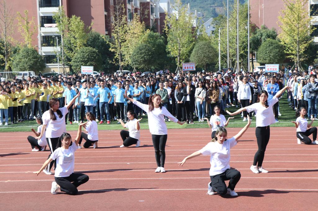 随着运动员代表和裁判员代表宣誓结束,各个学院带来的开场表演随即而来。首先,由管理工程学院和信息工程学院带来开场舞表演;紧接着,物流工程学院与经济学院相继上场,最后是来自基础部的“OH排舞队的表演,她们充分展现了自己的青春活力,为全体师生带来了精彩的表演。热烈激昂的舞蹈,蓬勃向上的活力,无一不在展现融智学子的风采。