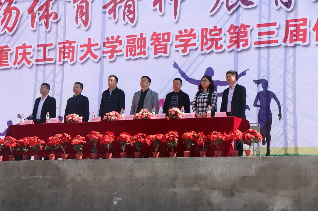 (通讯员:邓欢 梅赵紫)明媚阳光洒融智,运动健儿挥汗水。20181121210分,第三届体育文化节开幕式在学校运动场隆重举行。本次活动出场嘉宾有校党委书记丁广龙、校党委副书记陈龙国、校长助理兼体委李春雷主任、党政办主任王晓云、学生处处长唐川川、学生处副处长兼团委书记李刚、基础课教学部副主任吕福起。开幕式由基础课教学部副主任吕福起主持,学校各学院学生代表队及教职工代表队参加。