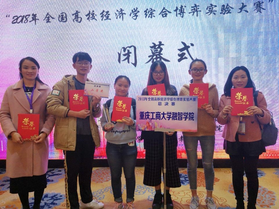 2018年11月10日,由中国数量经济学会、全国博弈论与实验经济学专业委员会主办的“2018年全国高校经济学综合博弈实验大赛”,在西南民族大学航空港校区顺利举行,来自全国58所高校的80多支队伍参加了本次总决赛。经过一天的激烈对决,由我校经济学院、经济学教学团队的刘春兰、谭美容2位老师带领的17经济学参赛团队喜获全国二等奖。