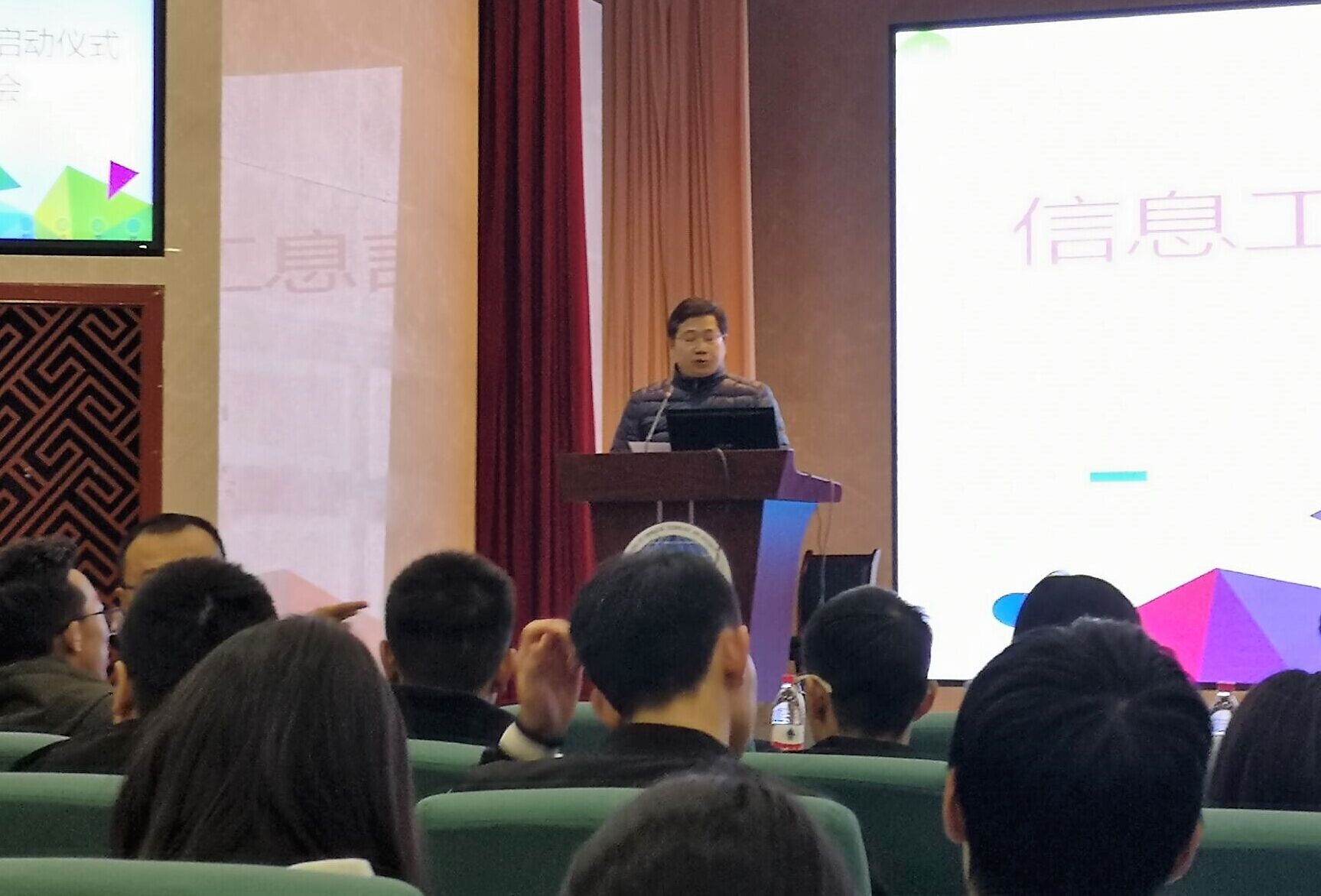 为加强学风建设,端正新生学习态度,11月13日12点20分,我院学风建设启动仪式暨宣讲会在学术报告厅开展。出席本次会议的老师有:信息工程学院副院长兼党总支副书姜文,党总支副书记叶远帆,院长助理李辉、综合办副主任梁建良以及各教研室主任、全体专兼职辅导员。2018级全体新生参加了宣讲会。