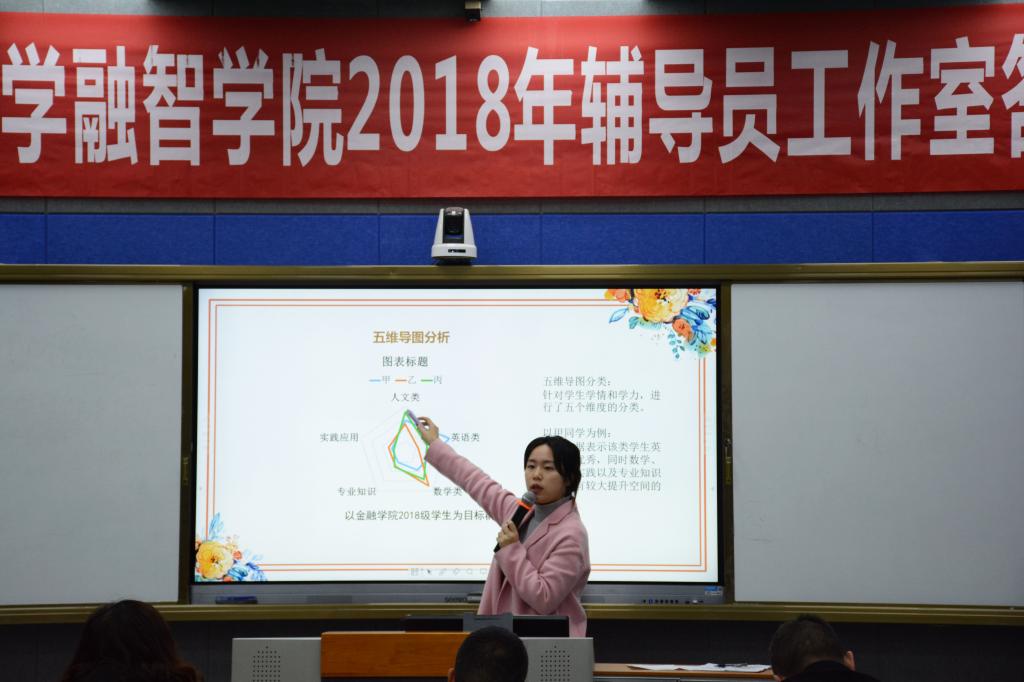 答辩环节后谭彩和老师做了点评。她认为建立辅导员工作室的目的在于夯实理论知识,以数据、理论为支撑,多加展示学生工作的成果。