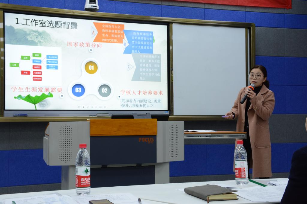 工作室主持人就选题背景、理念背景、总体目标、建设措施、预期成果和亮点特色等内容进行了现场展示,并认真阐述了工作室的具体内容和建设理念。各位评委从可行性,数据内容等方面出发向主持人提出问题,并就答辩内容给出相应建议。2