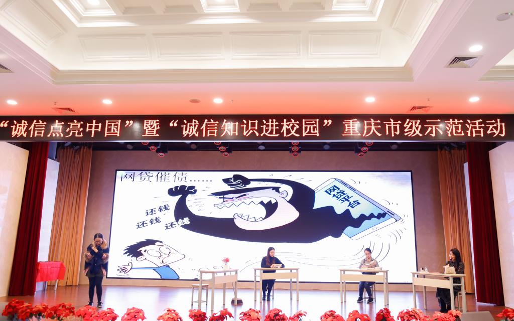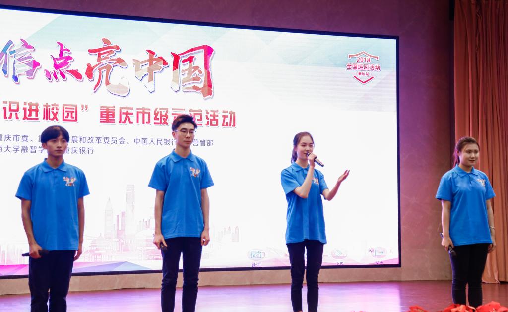 活动第二阶段,重庆银行渝中管理部以歌唱、征信讲座、相声、情景剧等多种形式对学生们关心的诚信相关知识进行了现场展示,传递出青年守信的价值。