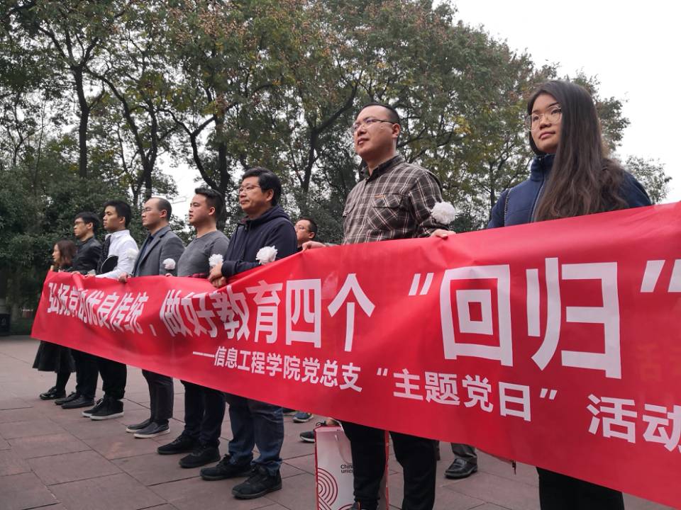 (通讯员:何建旭)2018年11月27日下午2:00信息工程学院党总支全体教师党员前往歌乐山红岩魂广场开展"弘扬党的优良传统,做好教育四个‘回归’”主题党日活动。
