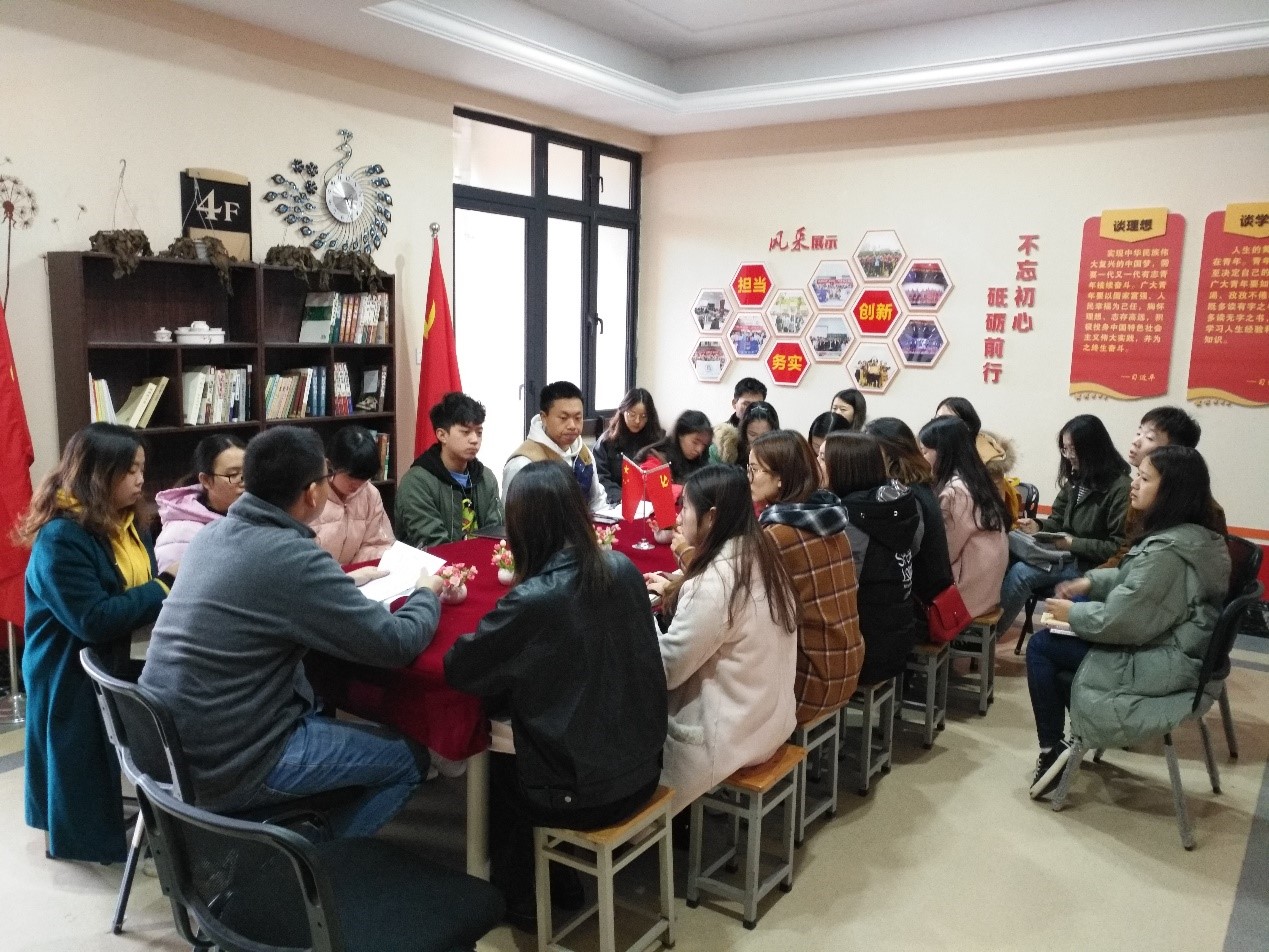 (通讯员:夏春晖)2018年11月19日下午17:30,商务学院学生党支部组织本学期新发展的预备党员及发展对象于学生公寓9栋4楼商务学院党员活动室开展学习了以“社会主义核心价值观及两学一做”为主题的党课学习,本次学习由商务学院学生党支部书记徐繁生担任主讲人。