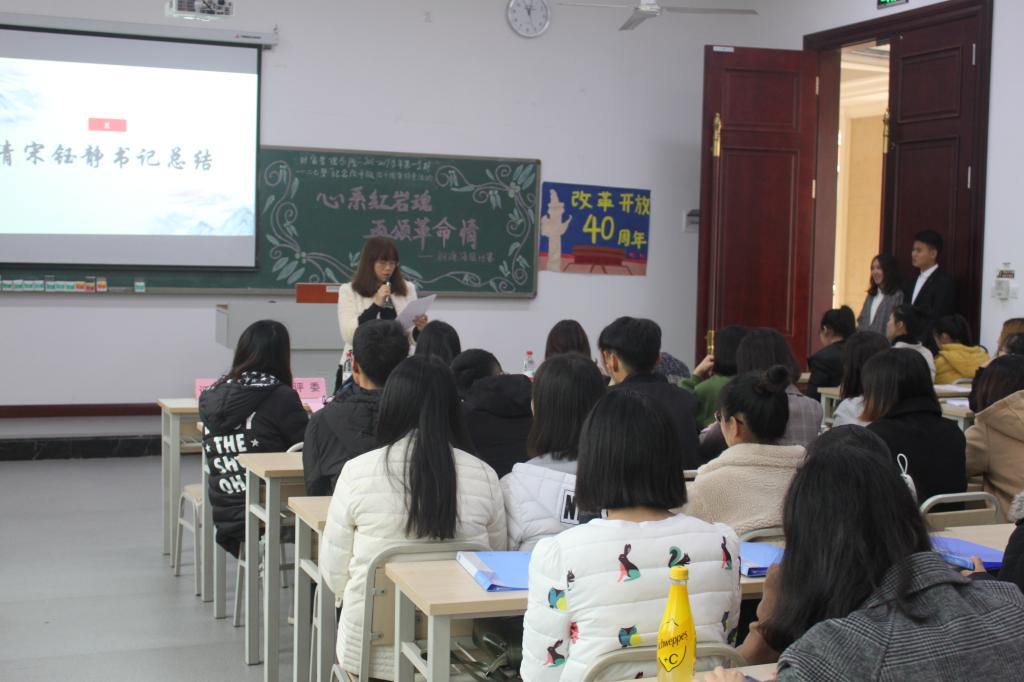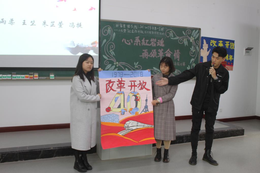 为缅怀革命先烈,让党员们深入学习红岩精神,同时为纪念改革开放四十周年,财富管理学院学生党支部于2018年11月16日下午14:00在教学楼1613教室组织召开了“一一·二七”暨“纪念改革开放四十周年”朗诵比赛和海报展示系列特色活动。
