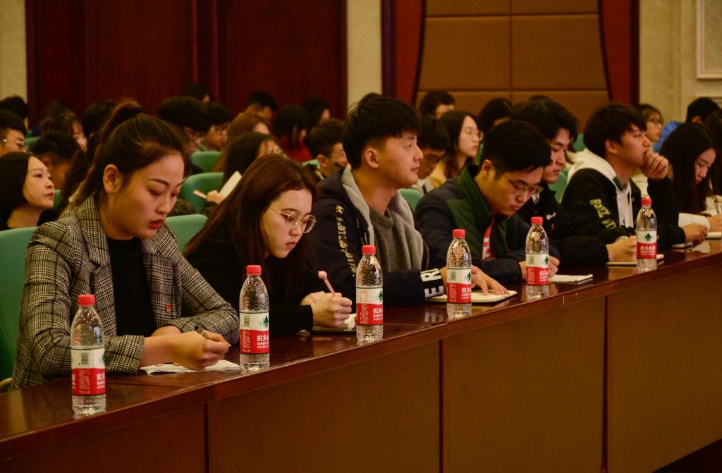 (通讯员 何月英)为进一步加大对团员青年、团干部的培养,20181129日中午12:00,我校第十六期“青马工程”团校菁英培训班开班仪式暨团校培训第一讲在学术报告厅顺利举行,共计340余名学员参加本期团校培训。出席本次开班仪式的领导有重庆工商大学融智学院党委陈龙国副书记、党群工作部倪倩茜部长、思政部常晓薇主任、学生处唐川川处长、团委李刚书记、金融学院党总支陈萍副书记、会计学院党总支姚转花副书记、物流工程学院党总支李喆副书记、商务学院党总支宋湘琴副书记、经济学院党总支乐晓勇副书记。