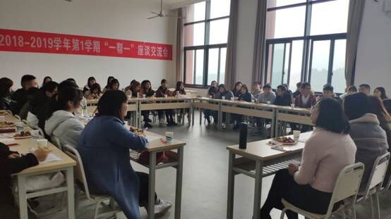为加强学风建设,帮助学业困难学生摆脱学业困境。2018年11月27日中午12时45分,重庆工商大学融智学院金融学院2018-2019学年第1学期“一帮一”座谈交流会于教学楼1612教室顺利举行。重庆工商大学融智学院金融学院党总支副书记陈萍、学生处学生科科长杨惠琳、金融学院学团办主任于成江、金融学院专职辅导员马秋婵、郑志欣、杨梅、刘官青参加本次座谈会。