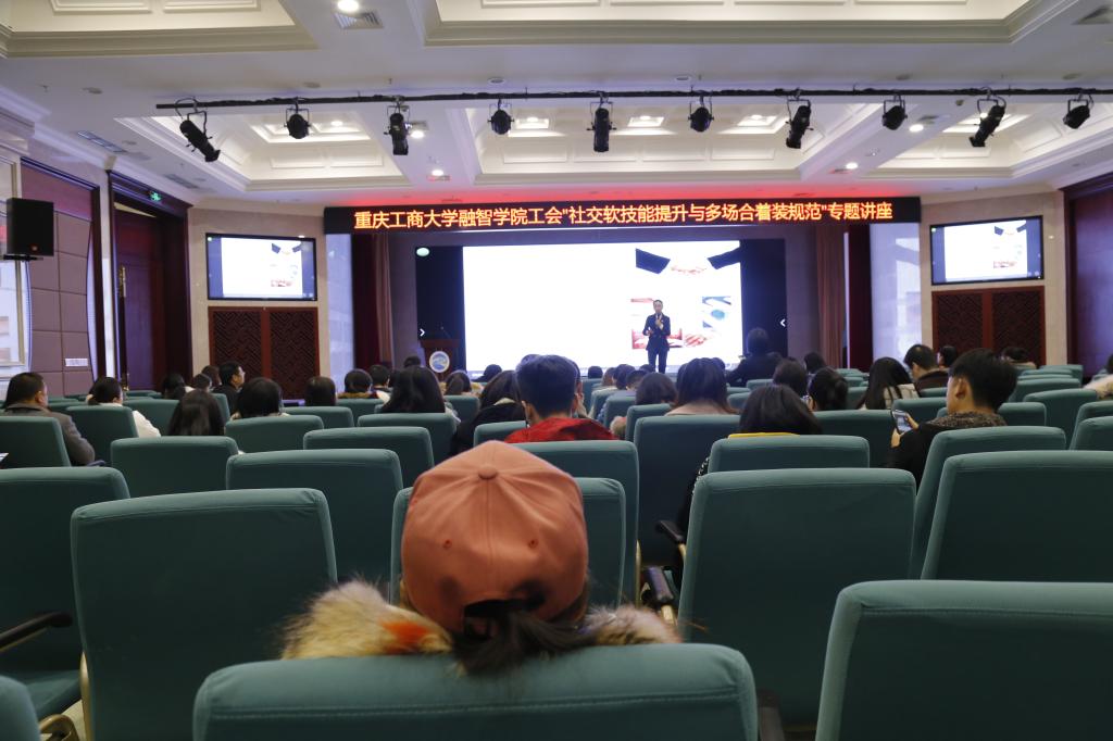 本次讲座围绕“如何提升个人的社交软技能、不同社交形态给人留下的印象、不同场合的着装规范”等社交知识展开。
