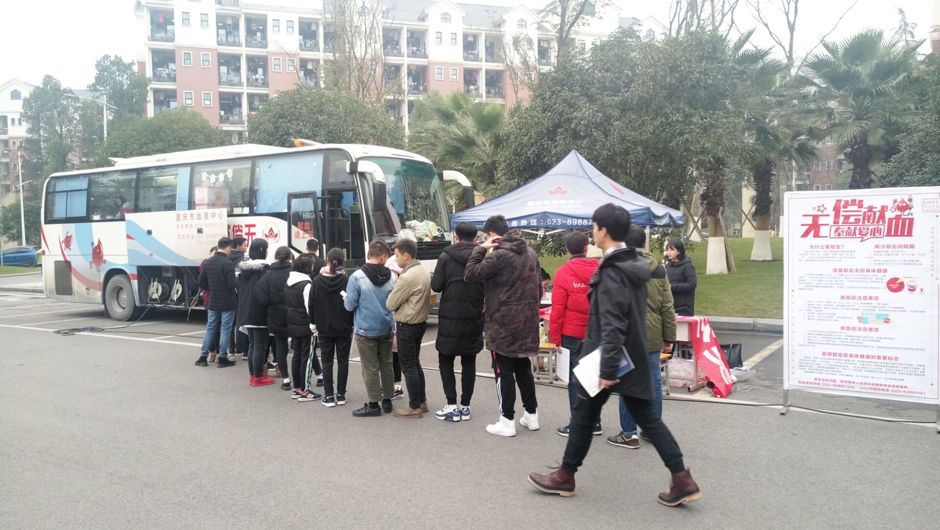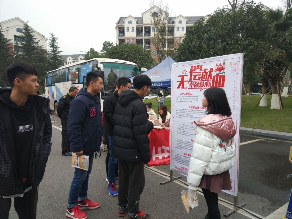 为展现新世纪大学生精神面貌,发扬大学生志愿精神,用爱心为生命加油。20181212-14日,由重庆市血液中心主办、我校后勤保障处承办的无偿献血活动于食堂正门顺利举行。