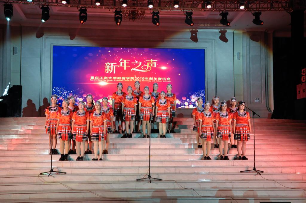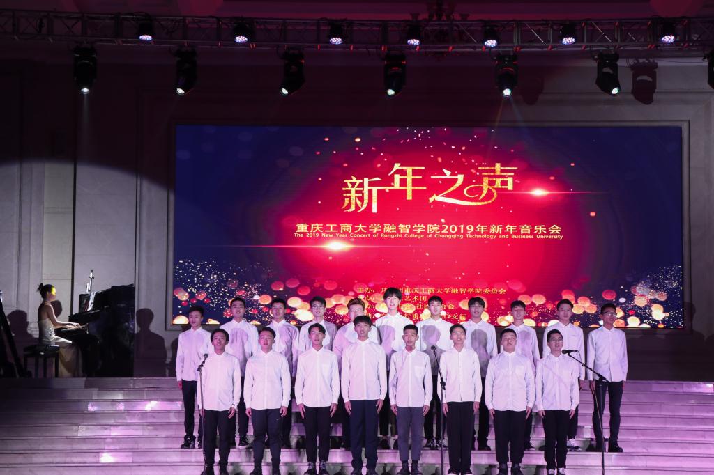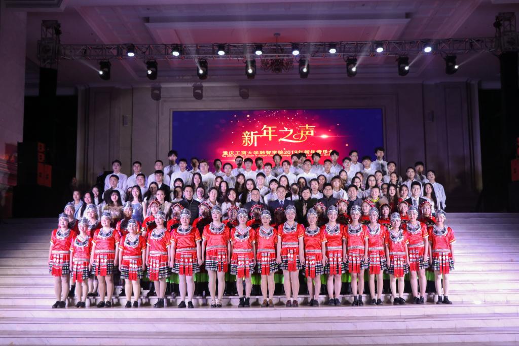 瑟瑟奏佳音,妙曲迎新年。20181221日下午18:30,由共青团重庆工商大学融智学院委员会主办,大学生艺术团承办,校学生会、社团联合会协办的我校2019年新年音乐会,在教学楼二楼大厅正式拉开帷幕。学校党委书记丁广龙、副校长吴华安、党委副书记陈龙国、党政办主任王晓云、思政部主任常晓薇、学生处处长唐川川、学生处副处长兼团委书记李刚、基础部副主任吕福起、会计学院党总支副书记姚转花、经济学院党总支副书记乐晓勇、商务学院党总支副书记宋湘琴及师生代表800余人共同欣赏了这场视听盛宴。