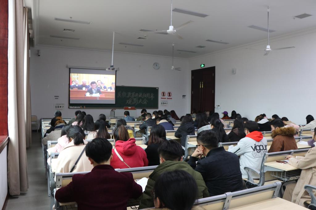 于此同时,我校在学术报告厅和各学院分会场集体组织并观看了大会直播,校党委书记丁广龙、副书记陈龙国、副校长沈民、校长助理房朝君、李春雷等校领导以及在校师生1200余人观看此次直播。
