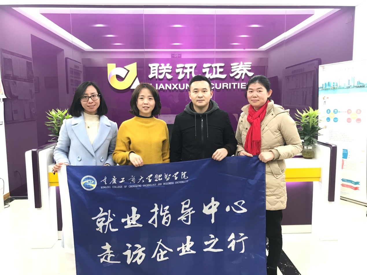 (通讯员 郑志欣)为推进校企合作,拓宽毕业生就业渠道,帮助毕业生了解就业形势,20181227日,金融学院院长贺晗,党总支副书记陈萍,辅导员郑志欣一行走访了联讯证券股份有限公司重庆分公司,并受到了公司总经理於铀强和营销总监傅琼的热情接待。