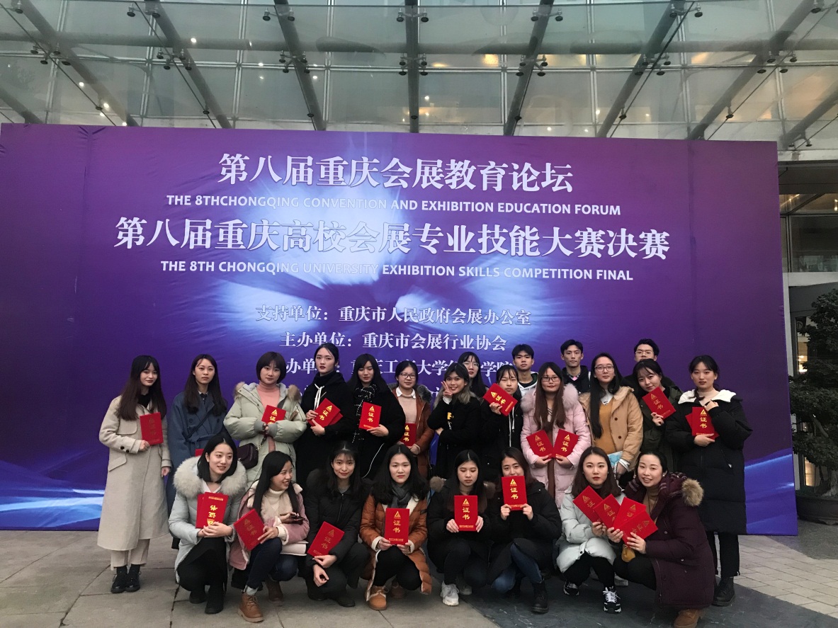 2018年12月28日,第八届重庆会展教育论坛暨重庆高校会展专业技能大赛在重庆国际会议展览中心举行。本次教育论坛暨技能大赛由重庆市会展行业协会主办,比赛内容包括会议技能展示、创意策划讲解和设计产品展示三个部分,旨在进一步提高重庆市高校会展专业人才的培养质量,即会展专业学生的实践能力与创新思维的培养,加强交流沟通。