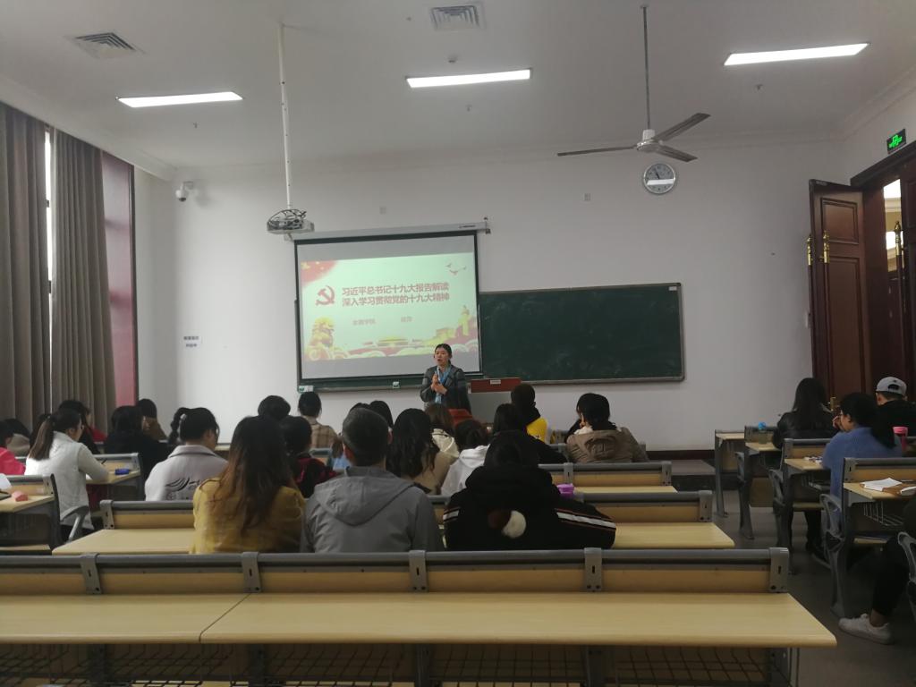 开班式结束后,培训班第一讲正式开始。金融学院党总支副书记陈萍老师作为本次培训班第一讲的老师,与学员们们共同学习学习十九大精神。课上,陈副书记分别从十九大报告内容解读、党的十九大与教育、推进“四个回归”做合格党员三个方面对十九大进行了深度讲解。并就新时代高等学校本科教育工作会议精神、全国教育大会精神后,结合十九大精神联系个人工作经验同学员们进行了分享了。
