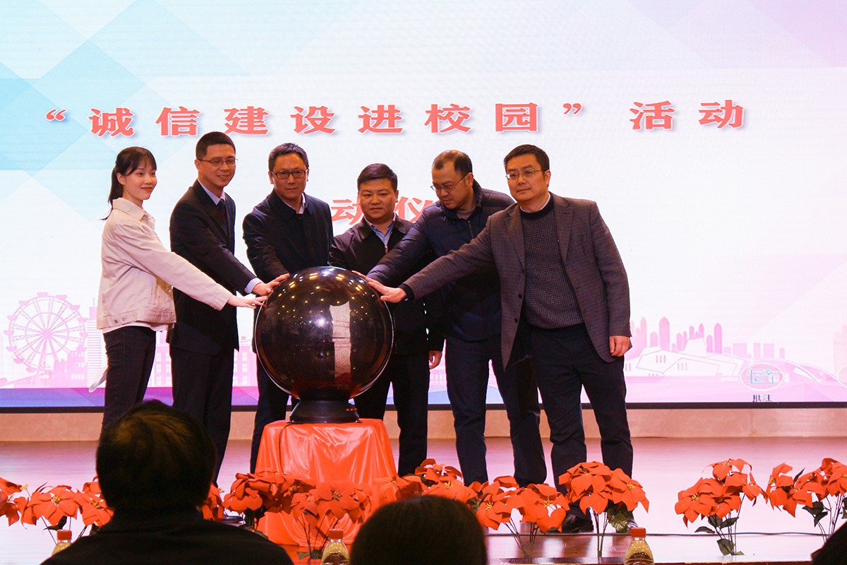 最后,共青团重庆市委员会党组成员、副书记谭涵之,重庆市发展和改革委员会财政金融处处长陈学知,中国人民银行重庆营业管理部征信处处长李理,重庆工商大学融智学院党委书记丁广龙,重庆华龙强渝信用管理有限公司总经理郑亮和融智学院学生代表共同点亮台上的水晶球,标志着正式启动"诚信建设进校园"的活动,将广泛传播"青年有信用,信用有价值"这一理念,深化重庆市青年信用体系建设工作。