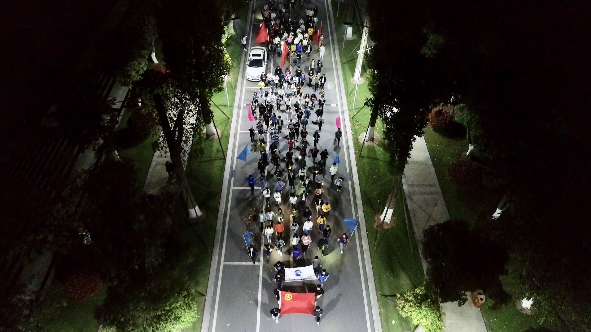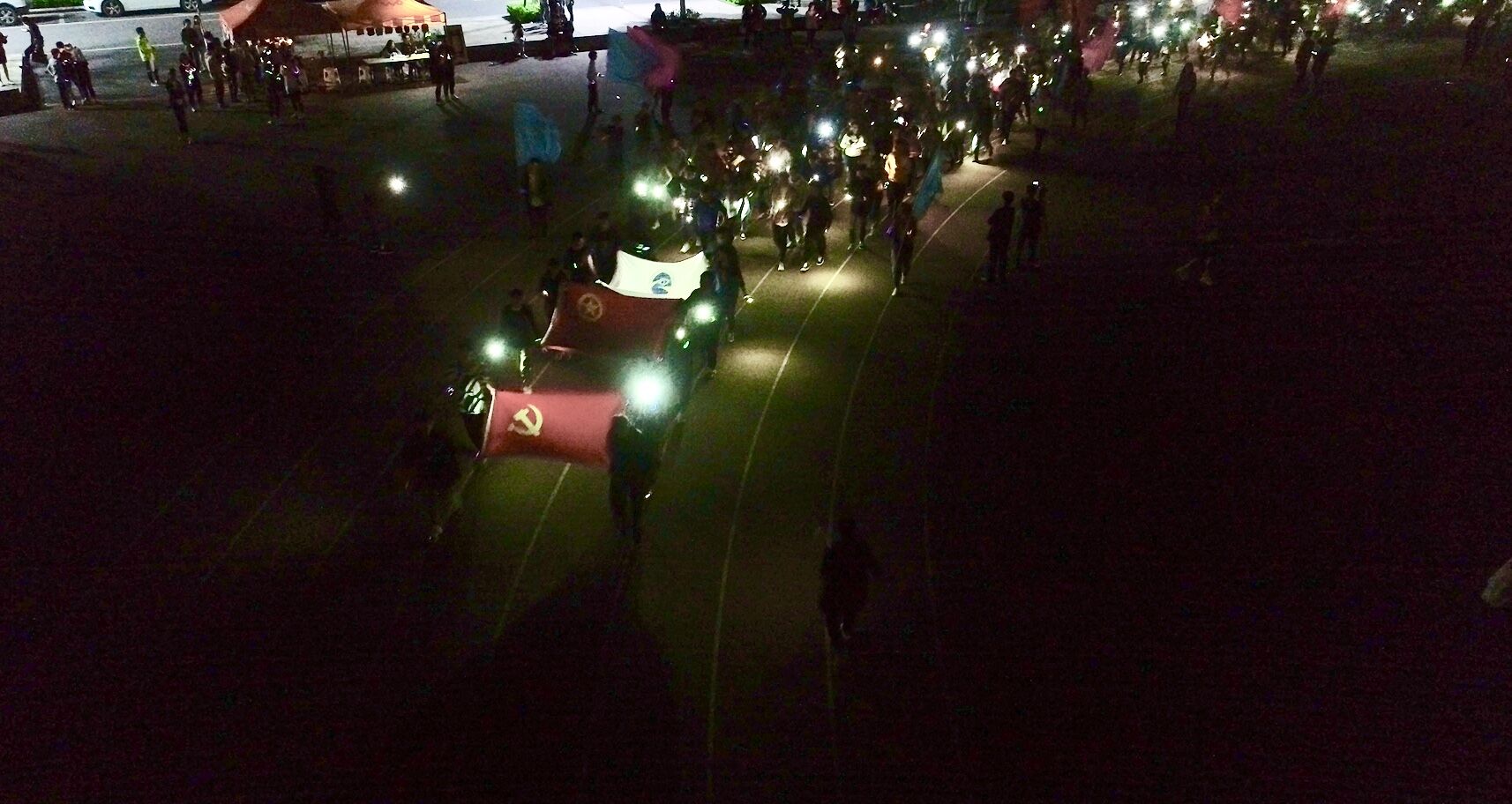 活动全程约3公里,各校级学生组织、各学院团学组织共计组成10余个代表队,象征团员青年以澎湃的青春行动纪念“五四”运动100周年。由校学生会、社团联合会组成的青春领跑团共同领跑,集结参与者在起跑点分组出发,1000余名团员青年手持荧光棒,身上佩戴着荧光牛角、炫彩闪光气泡手镯等荧光装备,在融智的星空下映衬出一条最闪亮的风景线。活动时值五四青年节即将到来之际,我校团委发出倡议,号召广大团员青年们挥舞着手机上的闪光灯并在操场中摆成“五四100”的形状,向五四运动100周年献礼。