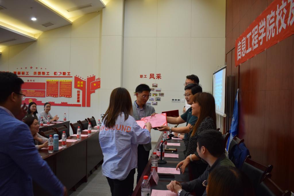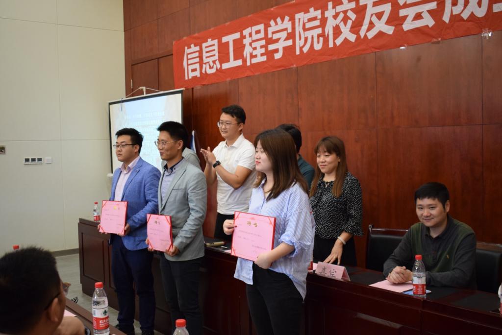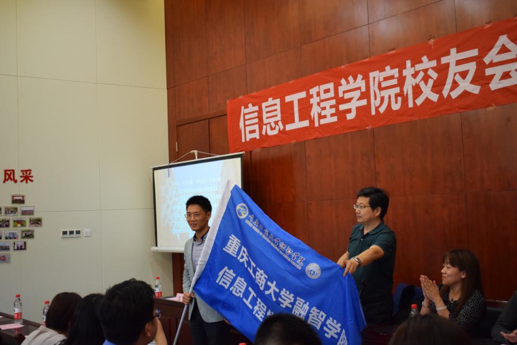 随后,梁建良老师主持校友会成立仪式,叶书记代表母校向信息工程学院校友会授旗,叶远帆等领导分别为当选的第一届校友会班子成员频发了聘书。新当选的会长夏治禹在发言中对母校的培养和关心表示了感谢,表示将带领全体成员全力服务校友,为母校增添光彩。