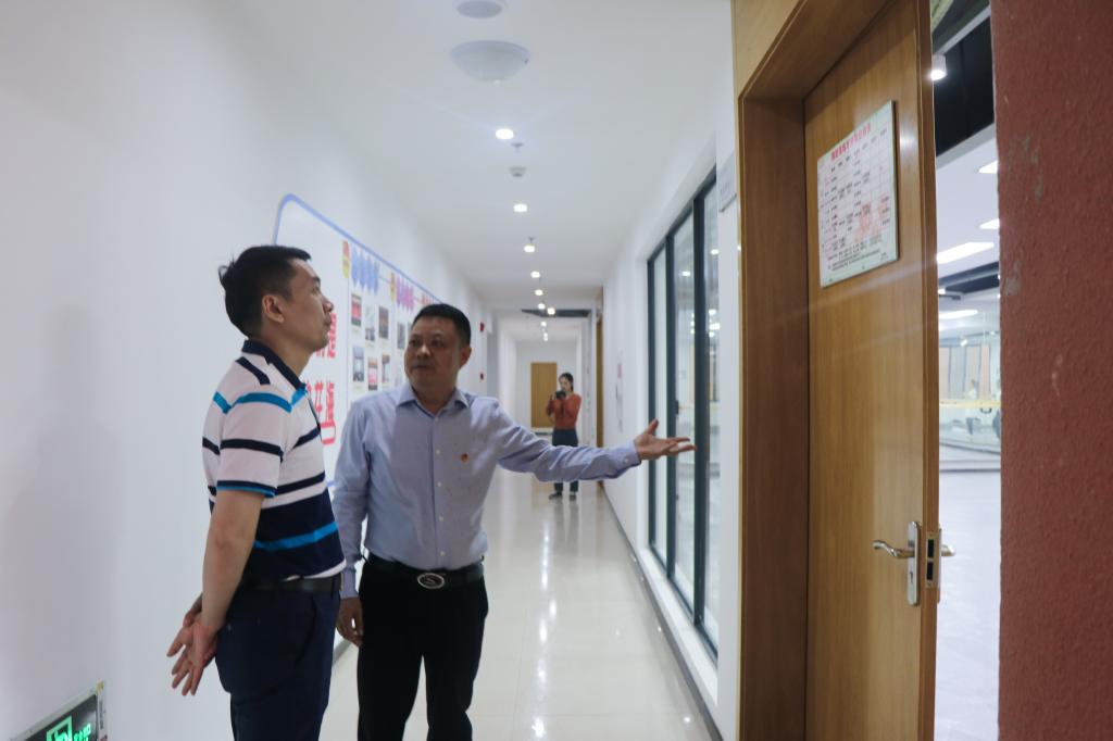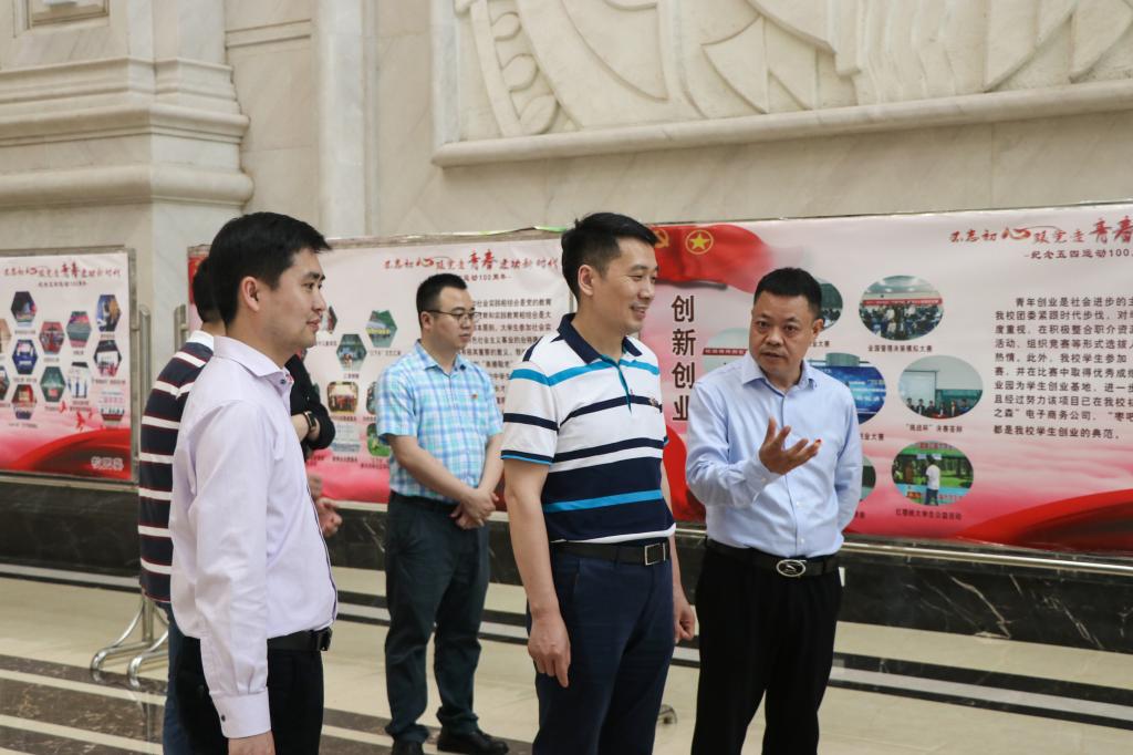 廖传锦副书记一行莅临我校后,首先参观了校园和共青团工作阵地。参观期间,党委副书记陈龙国就我校的校区建设、学科发展、团学工作进行了简要介绍。