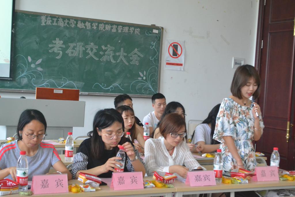 为进一步提高学生的考研热情,明确考研目标并掌握相关考研技巧,财富管理学院于4月25日中午在教学楼1521教室举办了考研交流大会。财富管理学院院长助理魏彦博老师,兼职辅导员张攀红老师,专职辅导员李秋河、芦丹、左小容老师及2015级考研成功的学长学姐参加了本次会议。