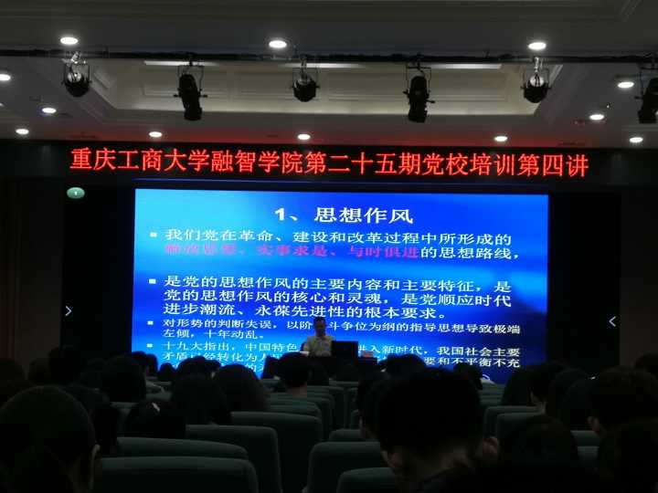 4月19日中午12:30,重庆工商大学融智学院第25期党的知识培训班第四讲在学术报告厅进行。本次培训由重庆房地产职业学院李果副院长担任主讲人。