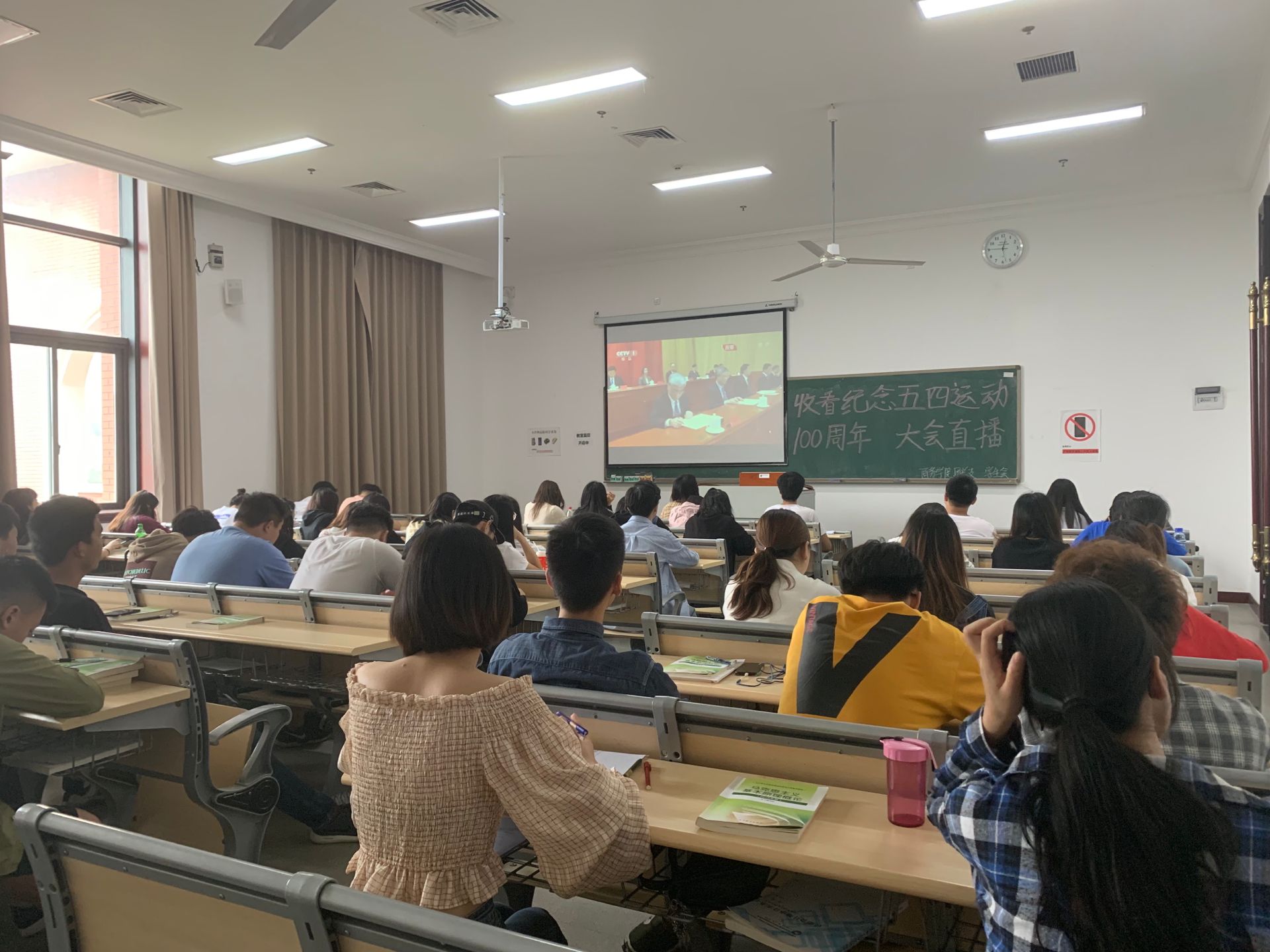 我校各级团组织和广大团员青年观看纪念五四运动100周年大会直播