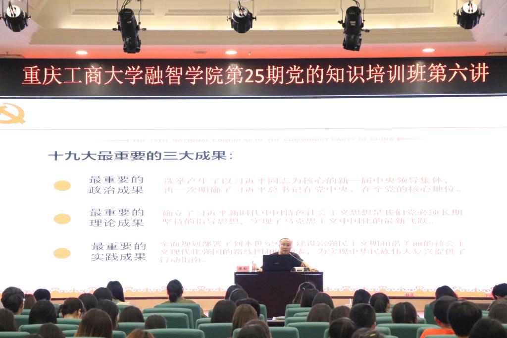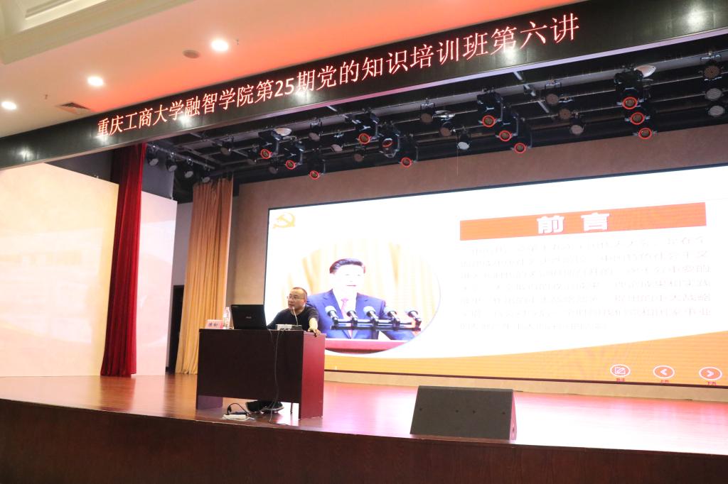 4月26日中午12:30,重庆工商大学融智学院第25期党的知识培训班第六讲在学术报告厅进行。本次培训由重庆工商大学马克思主义学院党总支书记陈松担任主讲人。