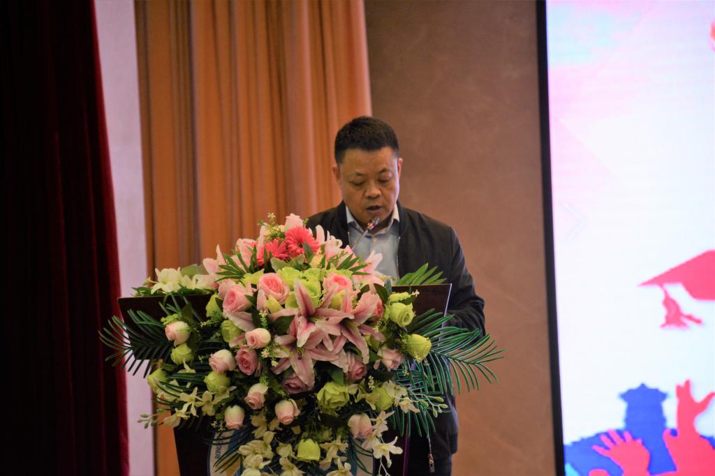 宣讲会上陈龙国副书记宣读了《关于聘任2019届毕业生优秀事迹宣讲团成员的决定》文件。陈龙国副书记和吴华安副校长共同为宣讲团成员颁发了聘书,同学们也为他们送上了鲜花。