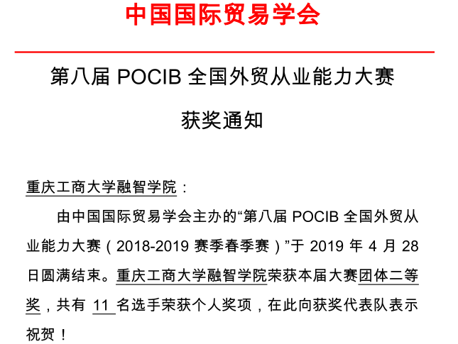 喜报!我校国贸学子荣获第八届POCIB全国外贸从业能力大赛(春季赛)二等奖