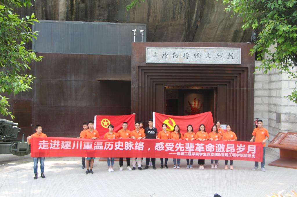红色文化是我国社会主义革命与建设的发展史中一种重要的文化,是中华民族伟大精神和优良品格的传承,是弥足宝贵的精神遗产,重庆正是一座具有红色文化源渊和无限文化创造力的城市。重庆工商大学融智学院历来重视对学生红色文化品格的培养,在学生中形成了自觉树立红色文化精神、主动汲取红色文化营养的良好风气。5月10日中午,为进一步加强党团组织和党员队伍建设,深化爱国主义教育,坚定理想信念,管理工程学院党支部组织学生党员及优秀团员代表一行17名同学在汪建军老师的带领下走进重庆建川博物馆进行参观学习,接受党性教育。