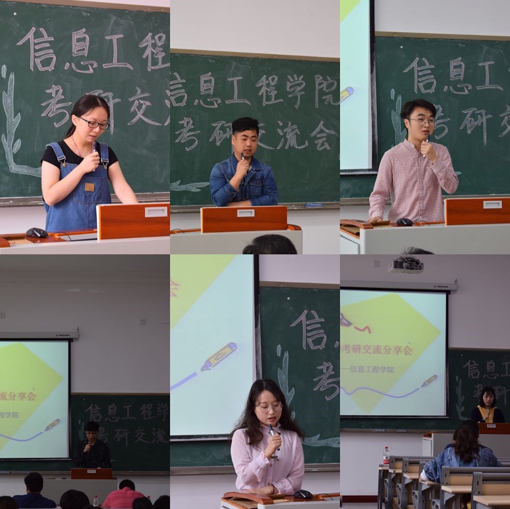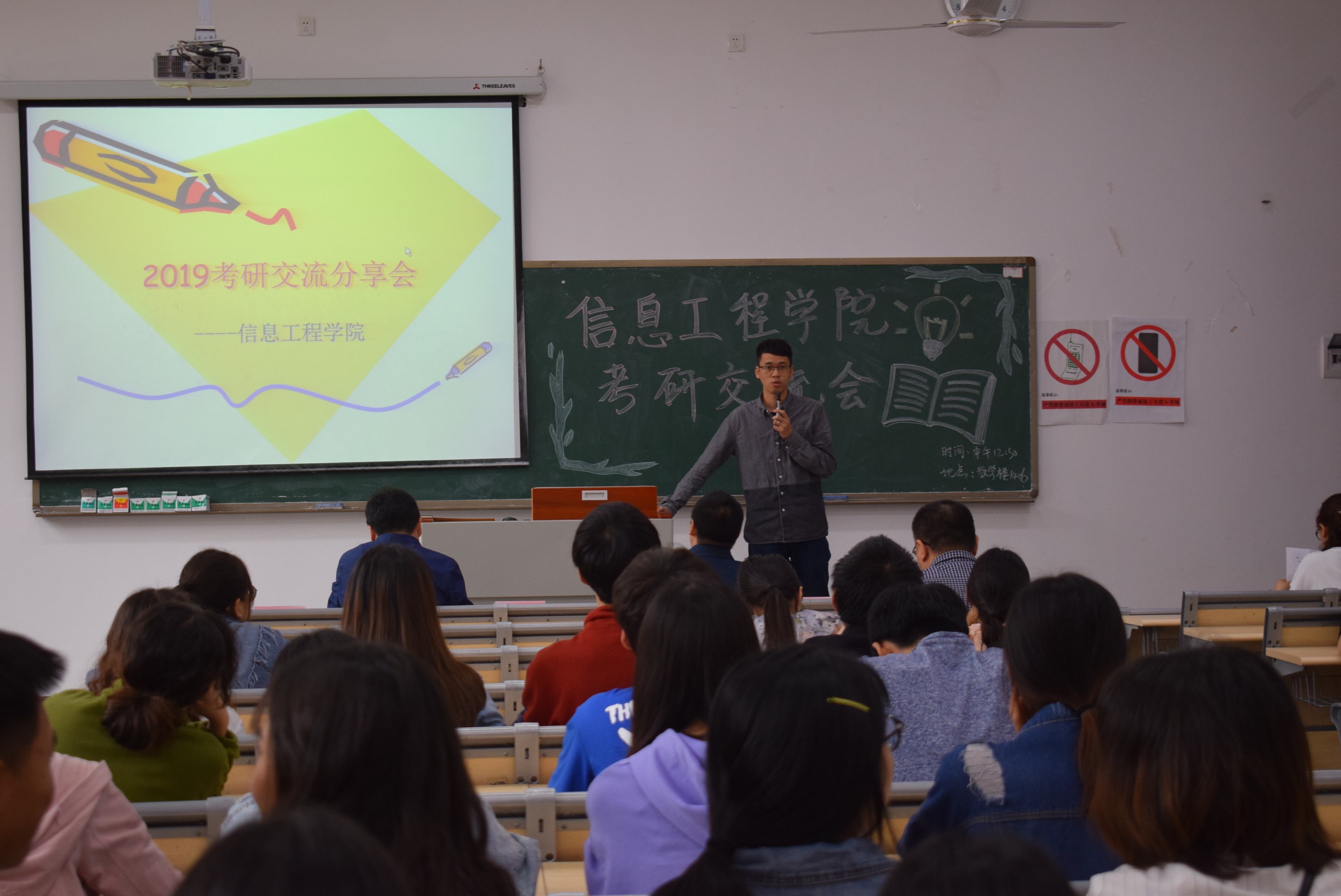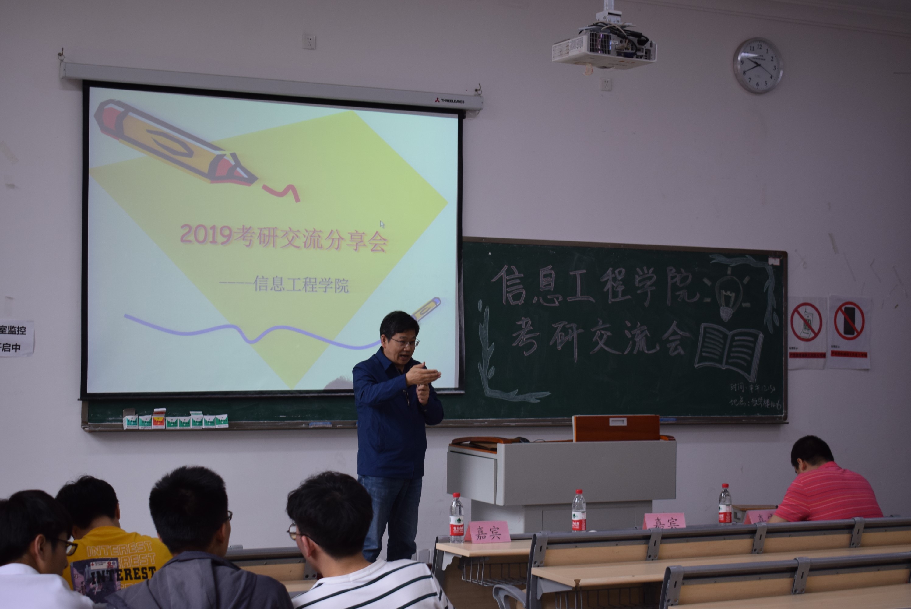 (通讯员:汪建军)为进一步激发我院学生的考研热情,明确考研目标,掌握相关考研技巧,了解更多考研信息,5月14中午12点30分,信息工程学院专职辅导员汪建军老师在教学楼1406主持召开了2019年考研经验交流会。参加此次交流会的嘉宾是信息工程学院院长周启刚老师,党总支副书记叶远帆老师,综合办副主任梁建良老师,专职教师屈芳青老师、专职辅导员何建旭老师、2019届考取研究生的学长学姐以及2016、2017级各班即将考研和有意向考研的同学们。