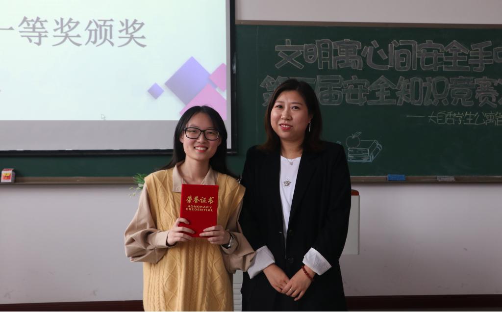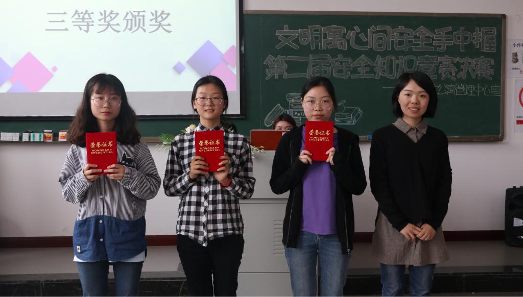 为加深同学们对安全知识的了解,增强理论知识用于实际生活的能力,2019年5月14日12:20,我校于教学楼1614展开了“文明寓心间,安全手中握”第二届安全知识竞赛决赛。此次比赛的评委老师由学生处杨惠琳老师、贺明玲老师、陈绪娟老师,保卫处黄琳城老师,物业部门蒋静老师担任。出席本次比赛的嘉宾有学生处王玲艳老师以及公寓管理中心全体园区辅导员们。