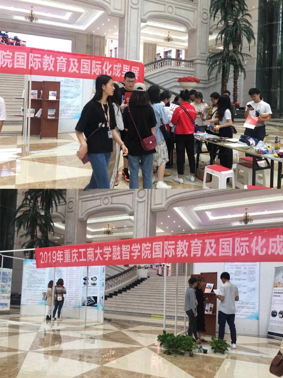 2019年5月15日-16日,重庆工商大学融智学院2019年“国际文化交流月”之国际教育及国际化成果展在教学楼大厅顺利举办。本年度国际教育及国际化成果展有英国布鲁内尔大学、英国纽卡斯尔大学、英国林肯大学、韩国又松大学、俄罗斯乌拉尔国立交通大学等海外姊妹高校合作的长短期交流项目参展。同时,我校与国(境)外教育机构、企业在深度合作基础上联合制定的“GPR进阶式”海外课堂特色化国际项目也在本次教育展上首次亮相。在学校的支持和师生精心布置下,为期两天的国际教育及国际化成果展立见成效。