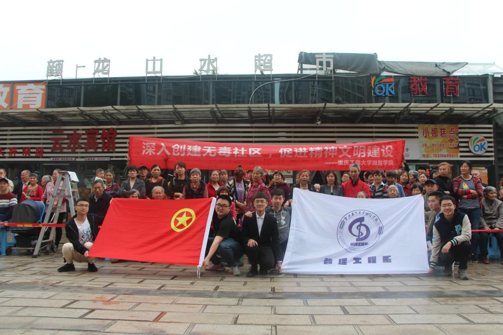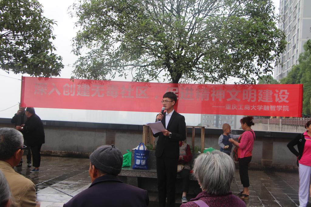 为普及禁毒知识,提升社区居民防范意识和拒毒能力。530日重庆工商大学融智学院管理工程学院在龙海社区颜龙小区开展珍爱生命,远离毒品禁毒宣传活动。