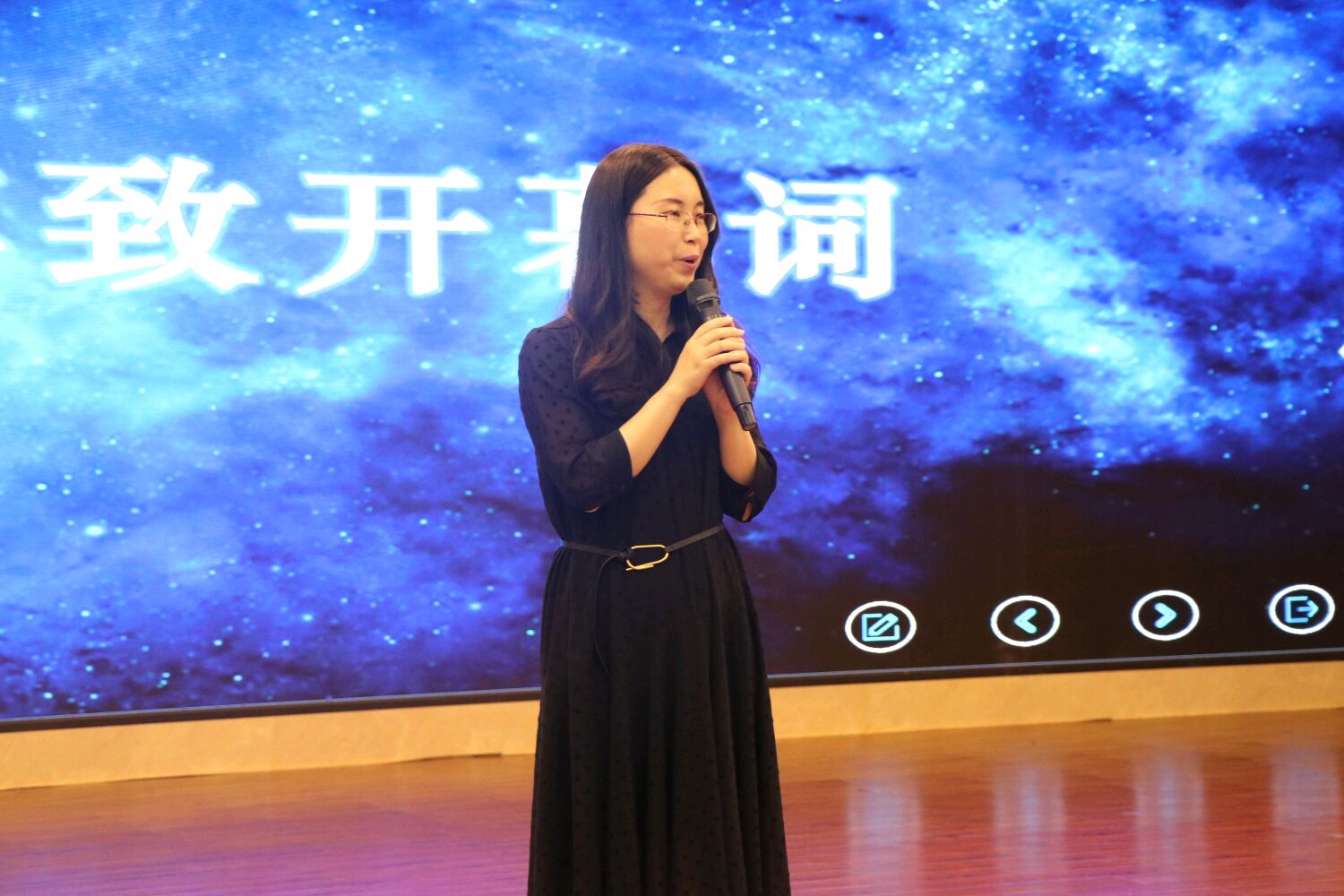 一场精彩的舞蹈表演后,由校长助理房朝君为本次比赛致开幕词。她指出我校以“做产教融合先锋,创民办高校典范”为办学背景,旨在培养学生研究与创新能力。她希望参赛者能充分发挥自身的潜力、展现最佳的风采。接着,她对一直以来支持大赛的领导和老师以及其他所有工作人员表示衷心感谢,并预祝大赛取得圆满成功。