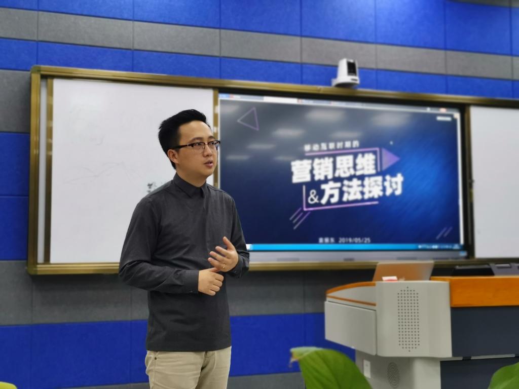 2019年5月30日下午,由商务学院、长江会展研究院主办,会展教研室、市场营销课程组承办的“第一届‘青年TALK’沙龙”暨市场营销教研活动在1220智慧教室成功举办。此次沙龙邀请协信商业营销推广总监袁振东作为主讲嘉宾,主题为“移动互联网时期的营销思维及方法论探索”。商务学院张红梅院长、宋湘琴副书记,会展、国商、网新三个教研室以及市场营销课程组的部分专职教师和40多名学生参会。