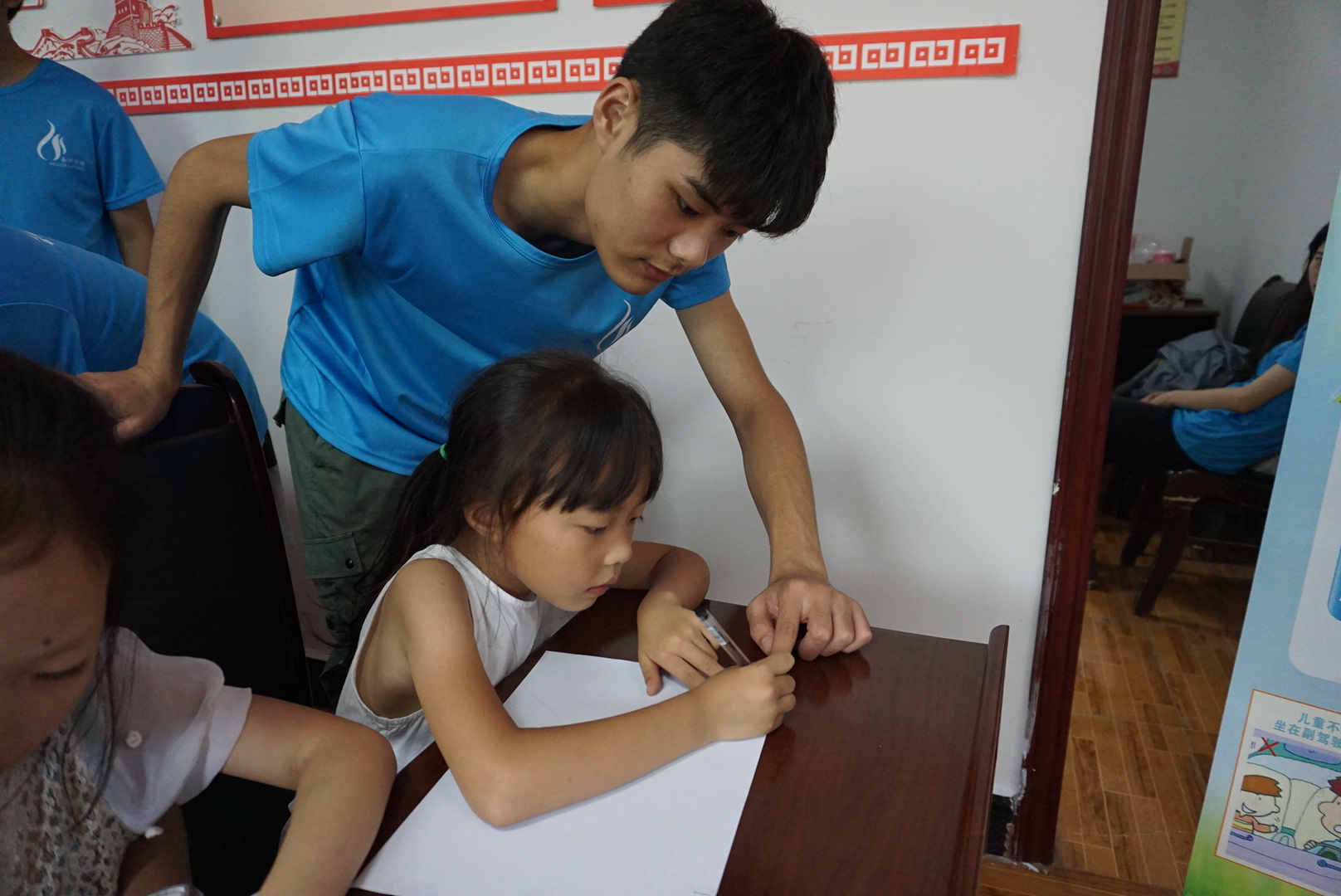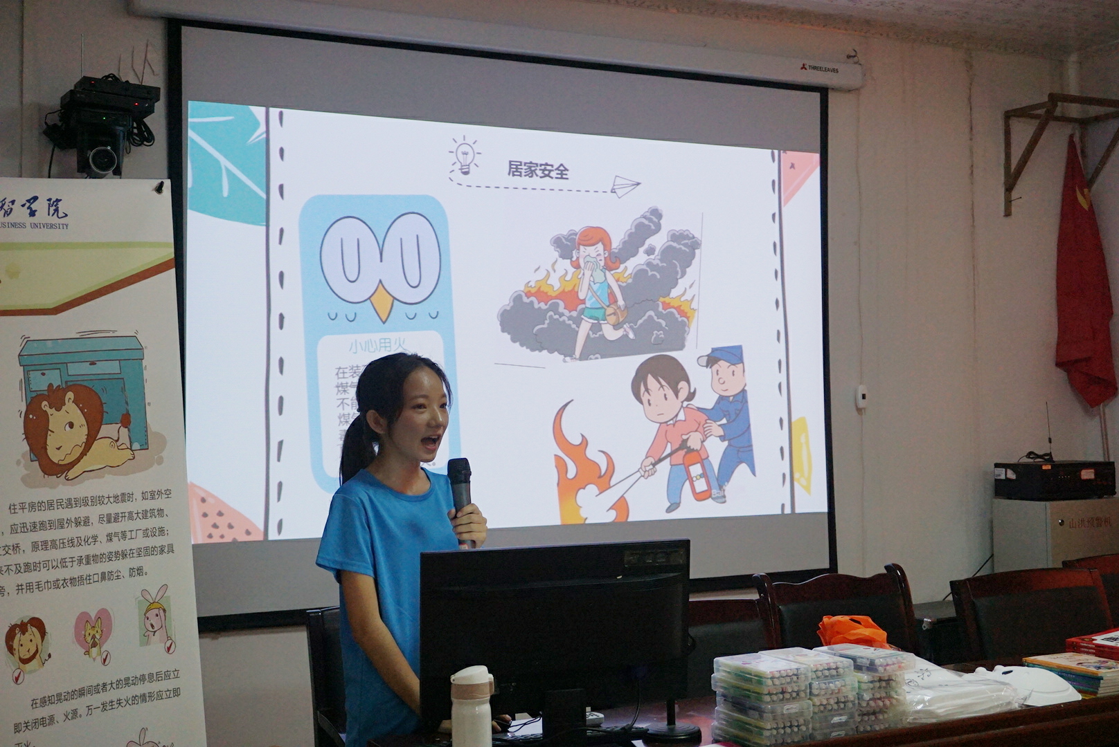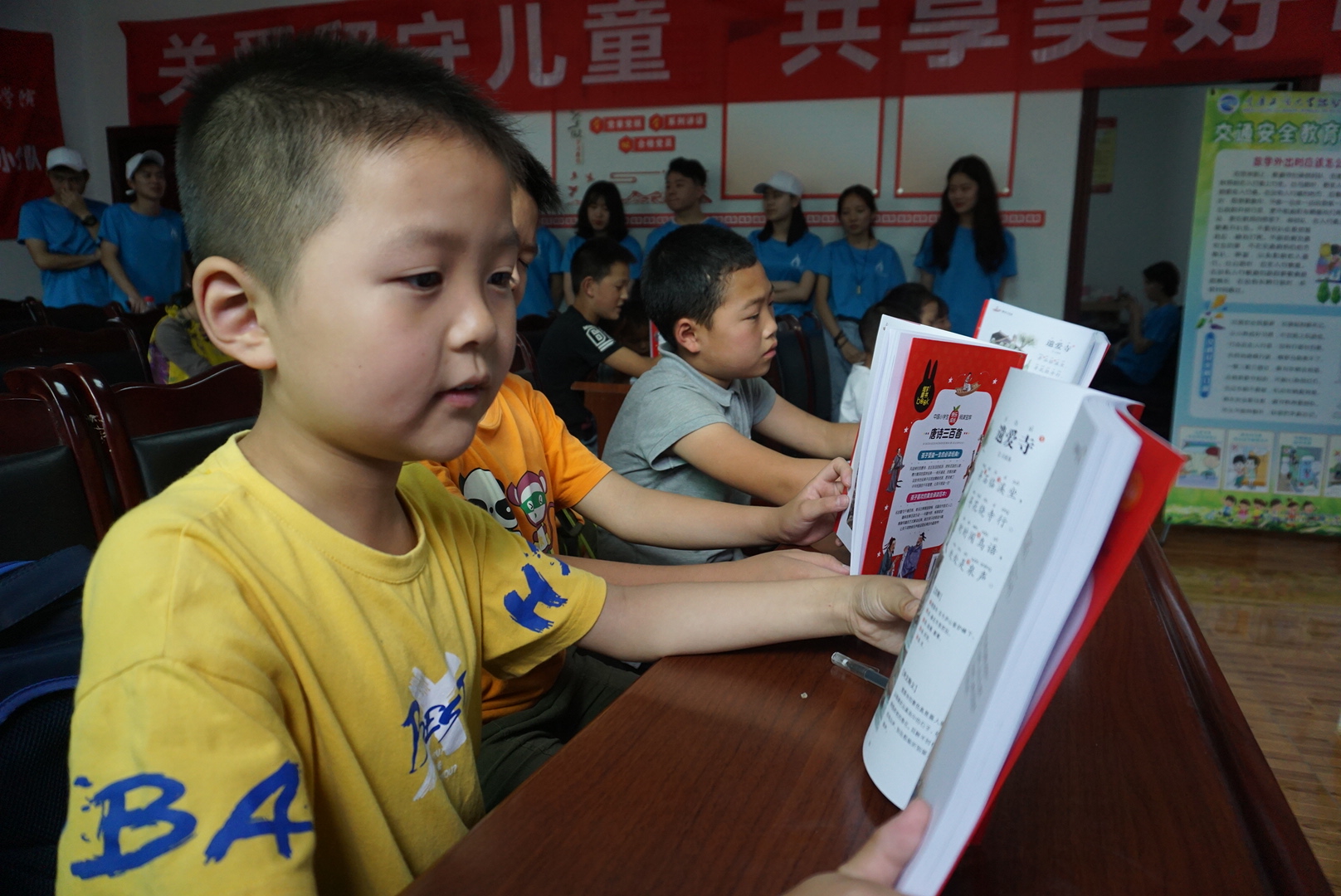 上午8:00,志愿者们准时到达龙宝塘村委会,并为授课做好充分准备,以最好的状态迎接小朋友们的到来。陆陆续续到来的小朋友依次到教室就坐,志愿者们分别与每一位小朋友进行了交流,了解小朋友们的学习需求,开始了上午的开班仪式、资助宣讲、安全教育及音乐课。在开班仪式中,龙宝塘村居委会陈福权主任对我们实践团此次的到来表示热烈欢迎,同时实践团李兰老师为在场的家长和小朋友们介绍了此次活动的具体流程和安排;在资助宣讲中,志愿者们通过国家资助政策的讲解,让家长和小朋友们了解国家资助体系,明白国家不让一个学生因家庭经济困难而失学的初心,增强了小朋友们不断求学的信心;在安全教育课程中,志愿者们普及了防火防骗、食品安全、身心健康等安全知识,增强了小朋友们的安全防范意识;在音乐课中,以教唱《我和我的祖国》来庆祝祖国母亲70华诞,清脆稚嫩的歌声在教室的上空久久回荡。