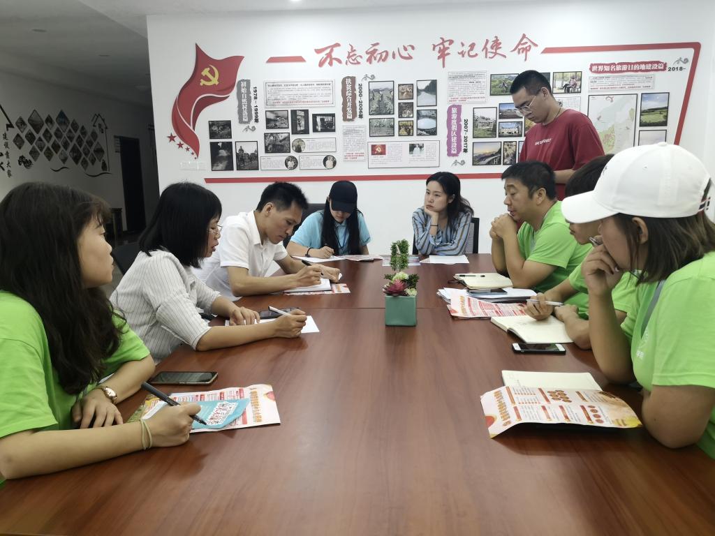 为宣讲十九大内涵,将十九大精神和习近平新时代中国特色社会主义思想相结合,组织农村广大干部群众深入学习习近平新时代中国特色社会主义思想,领会掌握基本观点、核心理念和实践要求,不断增进政治认同、思想认同、情感认同。2019年7月10日上午,由重庆工商融智学院金融学院团总支书记于成江带领三下乡志愿者代表来到石梁子社区和武隆团委党组成员、副书记高能进行工作对接,主要就本次理论宣讲内容、宣讲人员、宣讲地点等进行讨论,咨询高书记相关信息以及确定宣讲地点,讨论如何慰问老党员带去关怀,对支教以及人员安排进行详细说明,得到了高书记的大力支持。