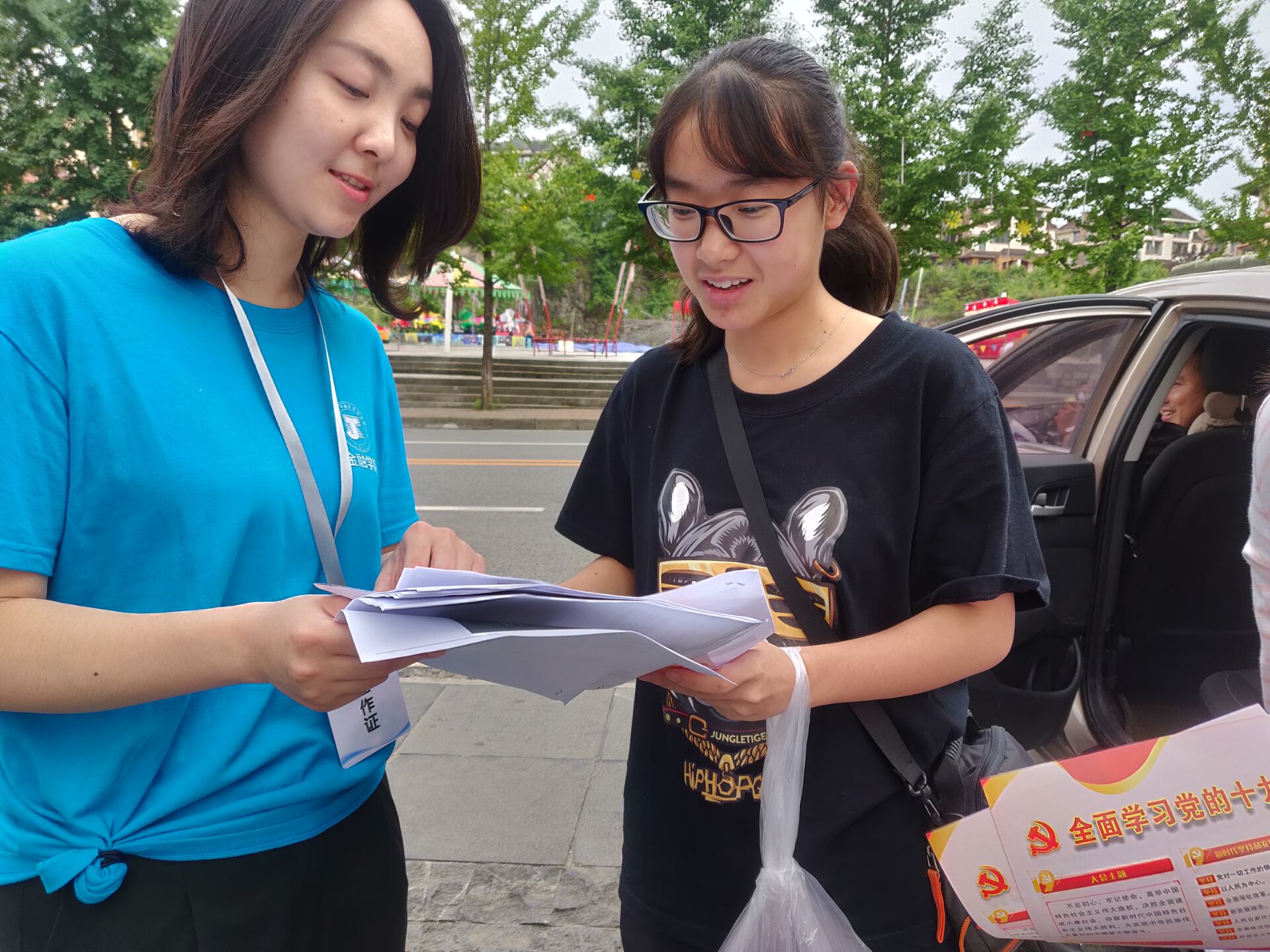 为了积极响应党的号召,树立正确的世界观、人生观、价值观,提高党的十九大精神在基层群众的普及度。同时,也为了让当地群众了解高校学生资助政策。在金融学院专职辅导员马秋婵的带领下,十一名志愿者来到了仙女山镇人流密集的街道分为两组分别宣传党的十九大精神和高校学生资助政策。志愿者们的宣讲受到了群众的赞赏,他们也被我们的宣讲内容所打动,指出党的十九大是党和人民实践经验和集体智慧的结晶,提出的一系列改革措施切实惠及到了群众,他们对于未来的发展更加具有信心。李奶奶的孙子刚经历完高考,但家庭经济条件欠佳,志愿者们向李奶奶介绍了国家助学贷款可以帮助解决学费、住宿费的问题,国家助学金可以帮忙解决生活费的问题,李奶奶听后对国家的政策感到由衷的赞叹。