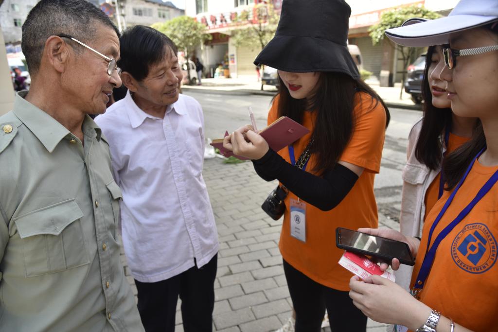 | 成员对桐梓镇居民进行调研 |