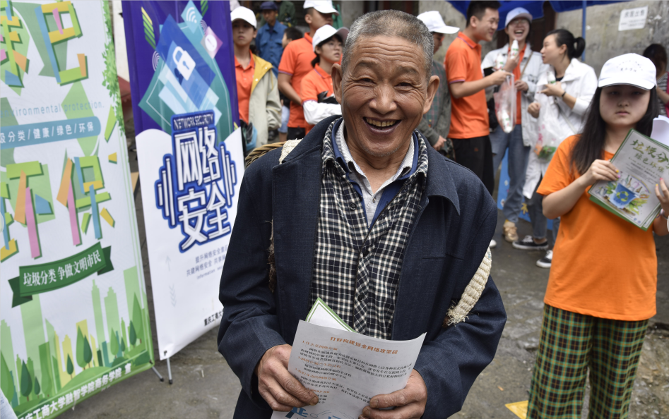 为贯彻落实习近平总书记对垃圾分类工作作出的重要指示,促进美丽乡村建设,践行大学生志愿者服务精神,更好地服务基层。2019712日,重庆工商大学融智学院商务学院三下乡暑期社会实践小分队深入到武隆桐梓镇进行“垃圾分类”与“网络安全”的问卷调查和理论宣讲活动。
