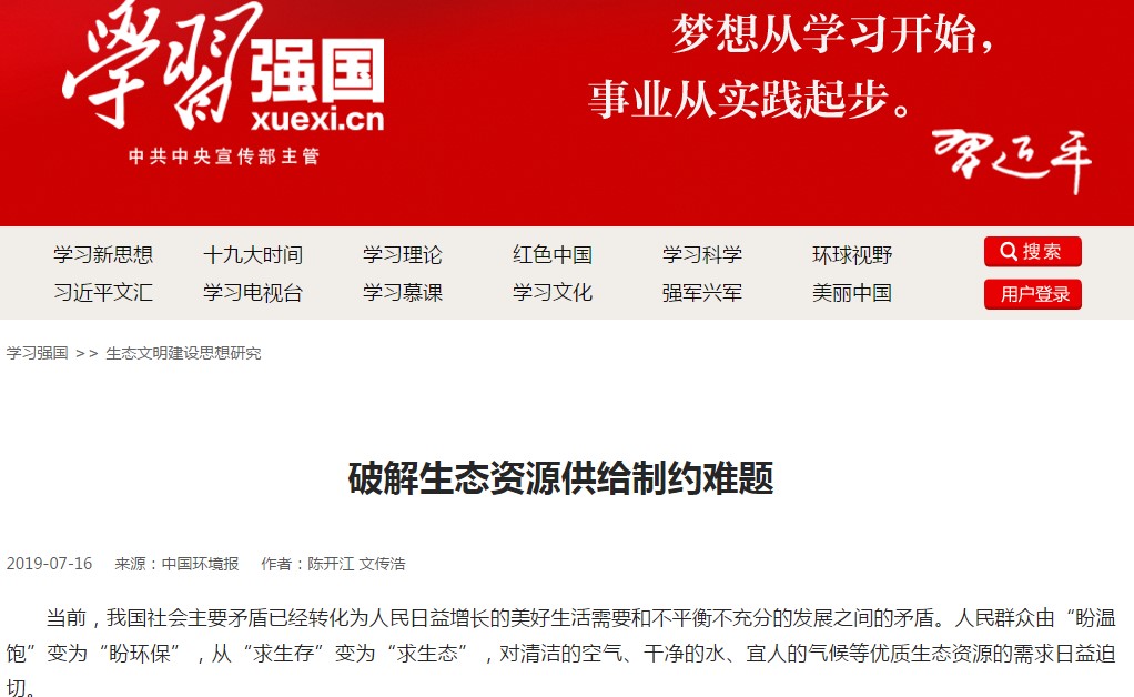 2019年7月16日,我校思政部教师陈开江副教授和重庆工商大学二级教授文传浩教授共同撰写的报刊文章“破解生态资源供给制约难题”在中国生态环境部主办的《中国环境报》发表。文章发表后,很快被人民网、中国经济网、求是网、中工网、法制网、海外网等多家网站转载,同时还被中共中央宣传部主办的学习强国学习平台、生态环境部宣传教育中心转发。文章如下: 文章链接: 人民网环保频道:http://env.people.com.cn/n1/2019/0716/c1010-31236536.html 中国经济网:http://www.ce.cn/cysc/stwm/gd/201907/17/t20190717_32640178.shtml 求是网:http://www.qstheory.cn/zoology/2019-07/16/c_1124757765.htm 中工网:http://green.workercn.cn/33226/201907/16/190716105443203.shtml 法制网:http://www.legaldaily.com.cn/environmental_protection/content/content_7935830.html 海外网:http://shengtai.haiwainet.cn/n/2019/0716/c3543620-31593439.html 学习强国学习平台:https://www.xuexi.cn/lgpage/detail/index.html?id=8987702337722170636 生态环境部宣传教育中心:http://www.chinaeol.net/hjxw/gnxw/201907/t20190717_711415.shtml。