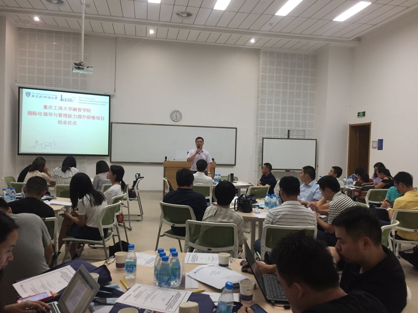 在阶段性总结大会上,5个小组组长,党群工作部部长、校长办公室主任、教务处处长兼信息化办公室主任、学生处处长、商务学院院长就小组学习小结及主题讨论意见建议进行了汇报。党委副书记陈龙国谈了此次西浦学习的感受和体会,并概括为:三个关键词,即尊重、信任、专业;两个观念,即教育即服务、民办即机会;一个建议,即借鉴西浦成功的经验,结合各部门实际,主动作为,大胆改革和创新,上下联动,探索一条适合我校发展的办学和育人之路。常务副校长吴华安首先对组织方表示了感谢,并表明要借助东部,先走一步;通过东部帮扶,促进学校健康发展,并提出了两点感受,一是西浦模式可推广、能复制、应借鉴,培训内容理念高、架构新、职责明、流程细,可以学思维、学认识、学态度、学方法;二是在西浦培训,传递了融智正能量,体现出大家是一个能超负荷学习和能抗压干事业的团队,也更加自信、自知、自强。同时,对下一步的相关工作进行了部署:一是要深入学习领会培训内容,积极放大培训效果,为新一学年开展“融智大讨论”奠定基础;二是要促进培训效果落实,由校长办公室牵头,思考顶层设计,推动2-3项全局性工作,有明显提升和改进;三是各部门负责人结合学习收获进一步梳理创新工作、重点工作和事务性工作,开学后将集中签定部门目标责任书。